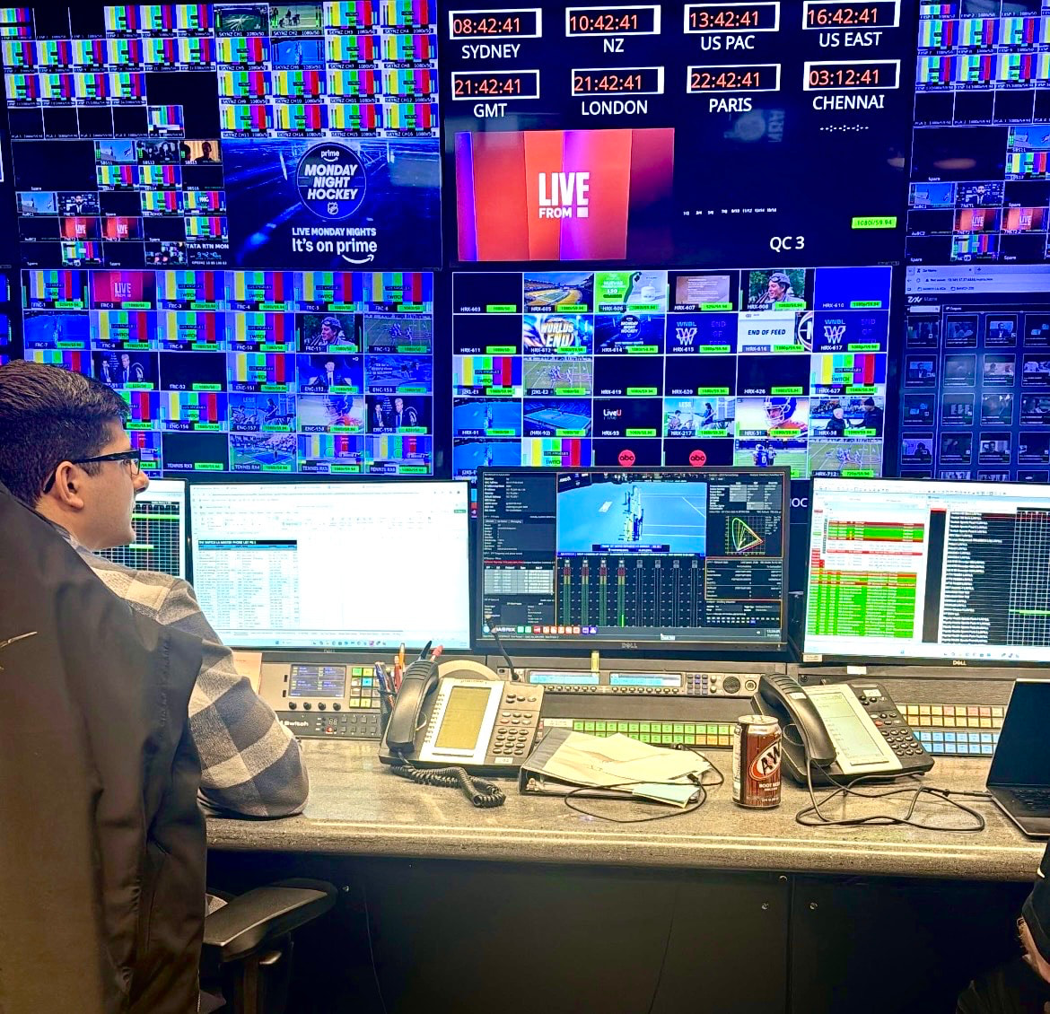 With less than a week to go, engineers at The Los Angeles Switch bring up the multiple circuits from Rod Laver Stadium for delivery to ESPN Bristol and the US Tennis Channel.