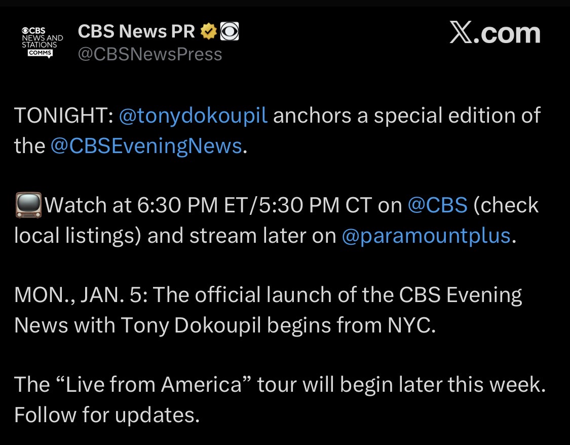 — CBS Evening News (@CBSEveningNews) January 2, 2026