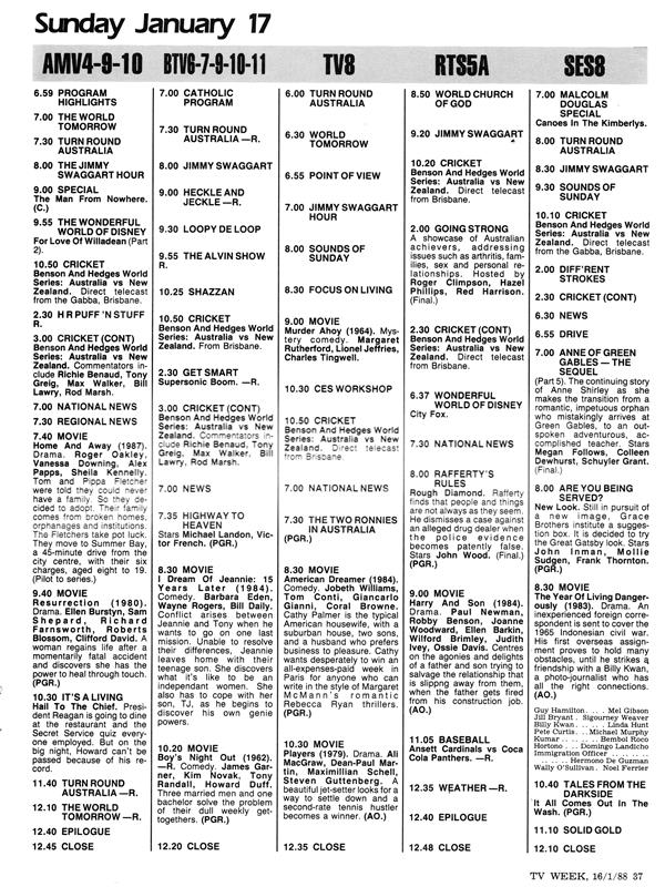 Today’s TV: 17.1.1988, Melbourne and Regional Victoria / South East SA / Riverland
