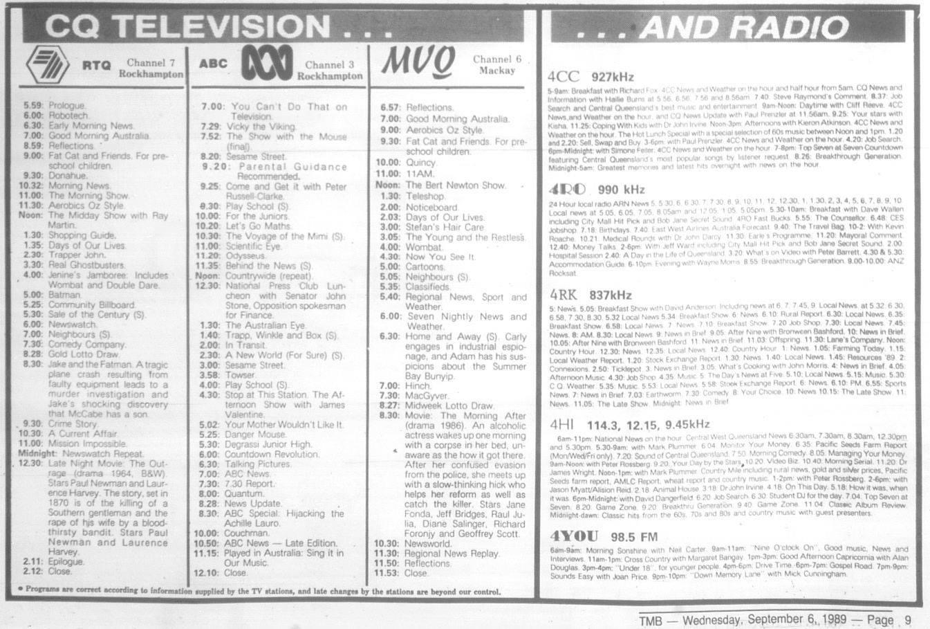 Another guide from Wed 6th September 1989, again from the Rockhampton Morning Bulletin. They’ve also listed MVQ’s Guide as well as RTQ/ABRQ’s.
