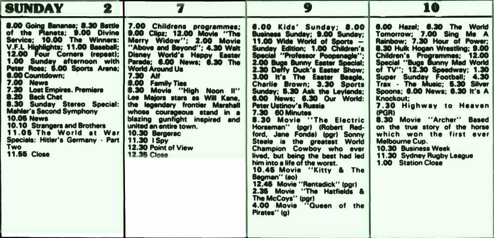 Adelaide TV Guide for Easter Sunday, April 19, 1987 courtesy of the Victor Harbor Times via Trove.