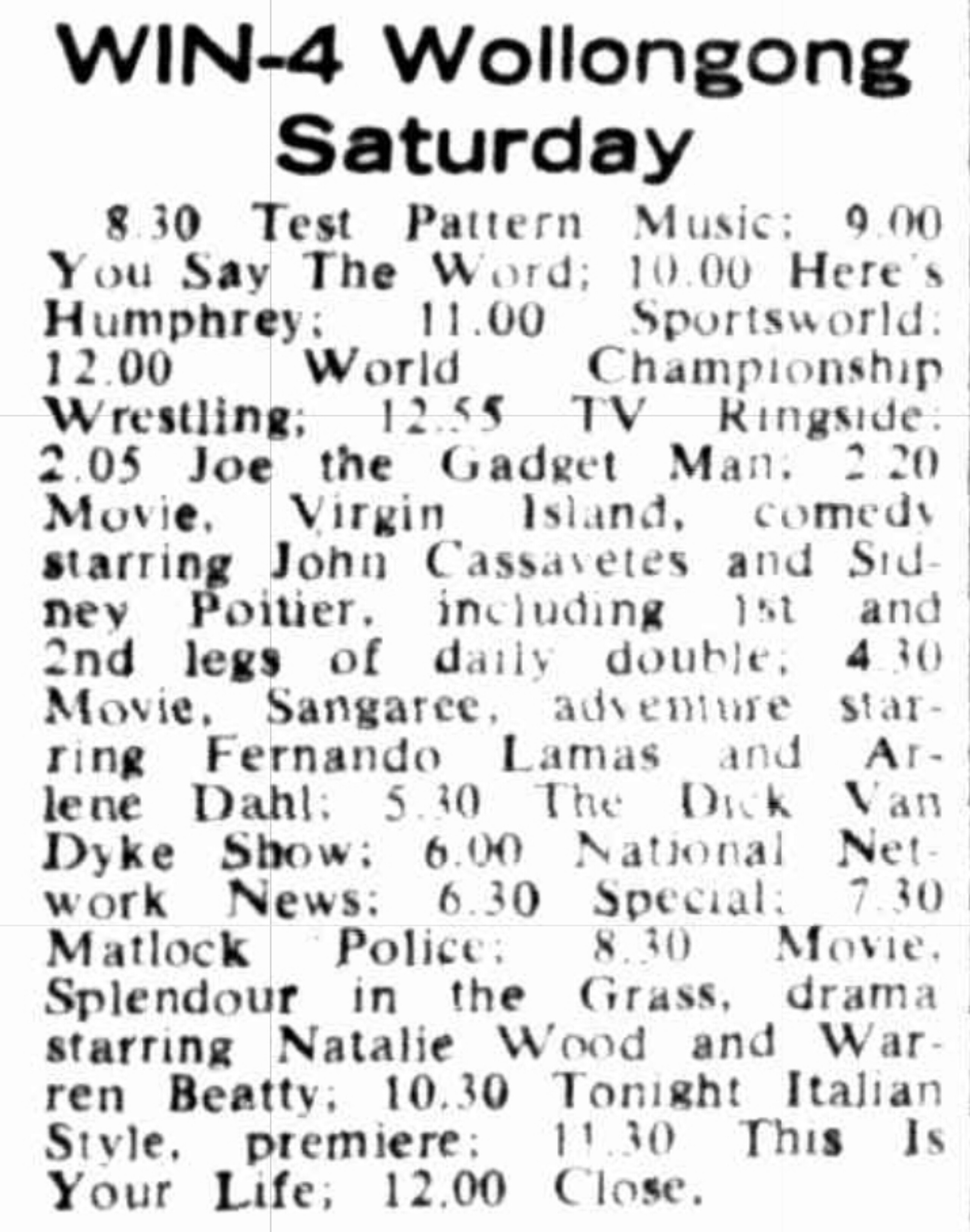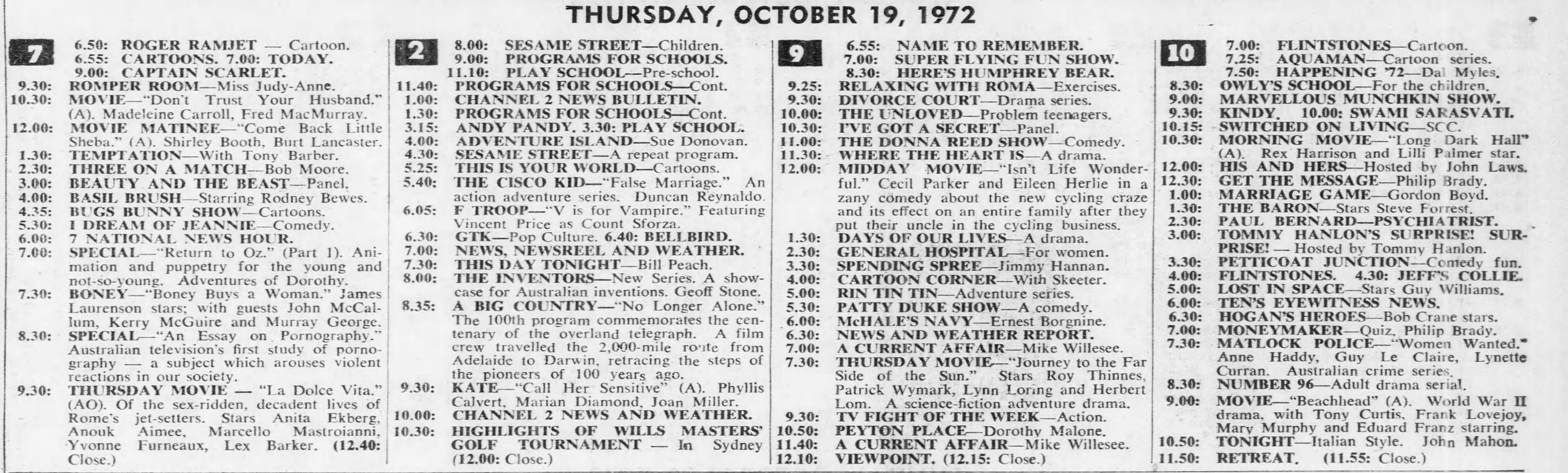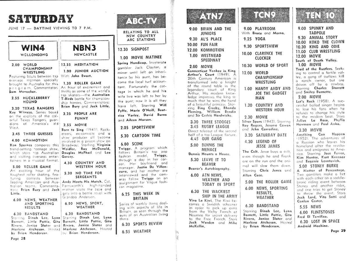 Layouts quite different in TV week for each city. Strange to see Kommotion on ATN7. I thought that was recorded at ATV0.