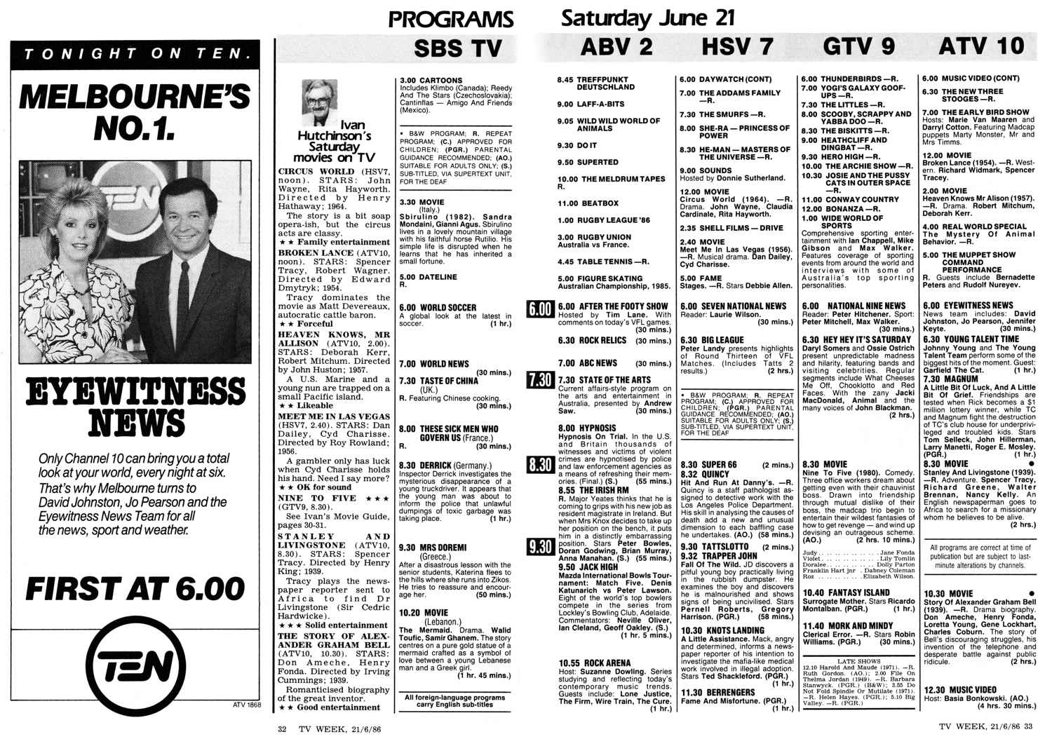 I think 10 just chose to run that ad on the Saturday page in that issue. It was usually Charles Slade and Jennifer Keyte on the weekends in 1986. During ratings weeks that year 10 were advertising in TV Week on every page of the Melbourne TV Guide.