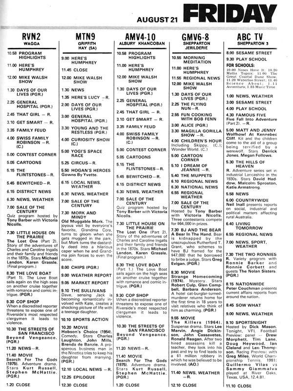 Today’s TV: 22.8.1980, Sydney