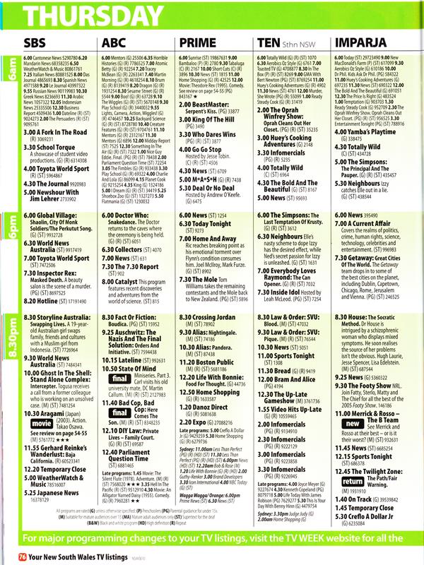 I still can’t work out why WIN4 and CTC7 were included in the Northern NSW edition. WIN4 would have been a possibility on the North Coast during tropospheric ducting.