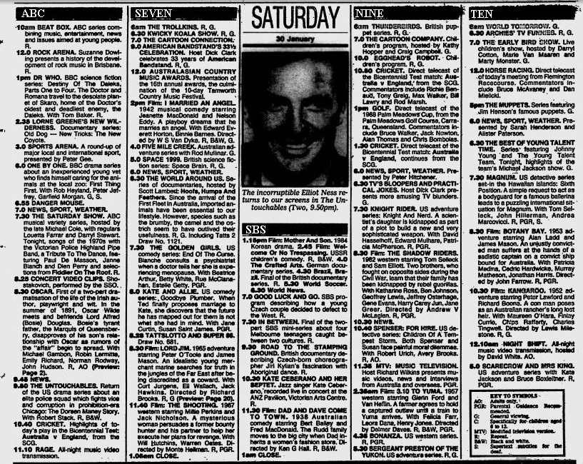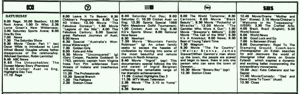 Exactly 30 years ago today - Melbourne, 30.01.1988 (from the Age Green Guide Google archives, I put in the channel names at the top of the image because it was unreadable from the archive copy)
