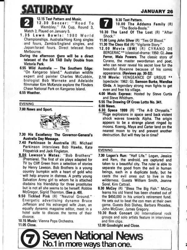 Local Adelaide shows included Top 40 Video on SAS7 and KG’s Sports Show on NWS9
