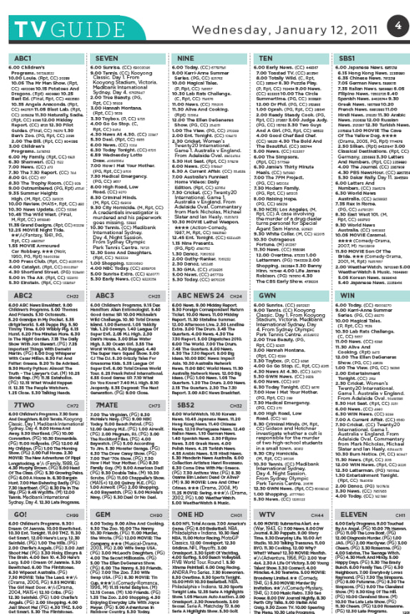 Day after the launch of multichannel Eleven featured on the printed guides. Seven had the Sydney International live until 2PM but the night session was delayed until late-night back then. Over on Nine there was a Women’s T20I between Australia and England at Adelaide Oval shown at 2:30PM AWST. Not sure if ti was live or delayed.