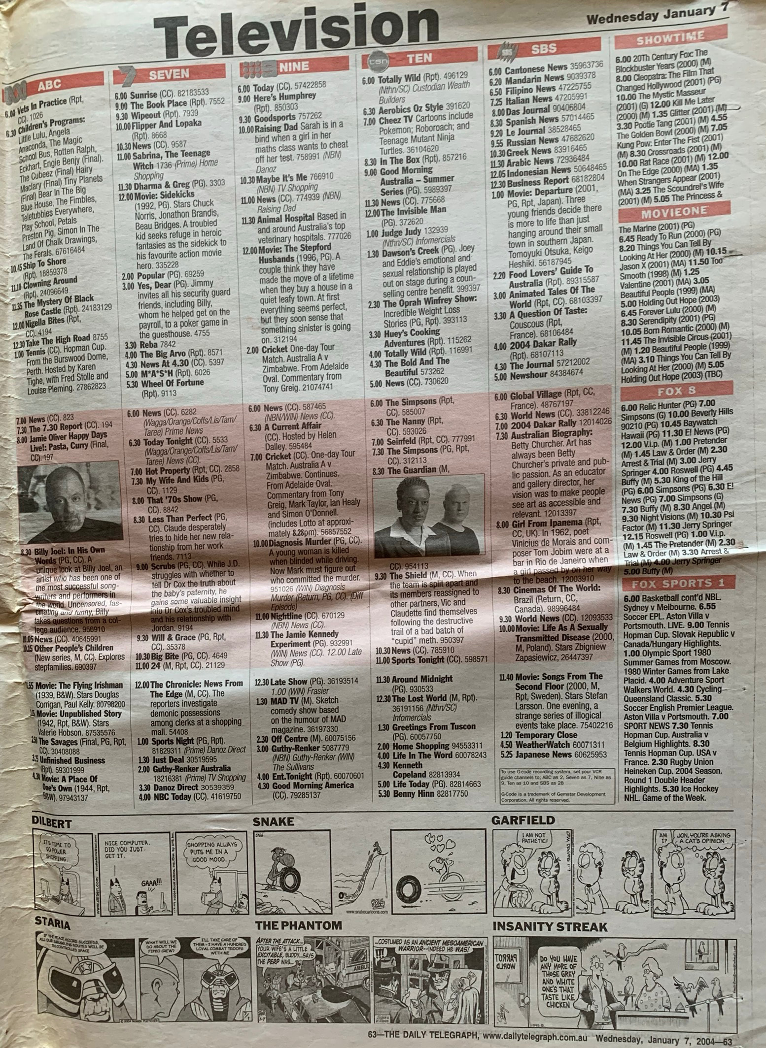 So I have found some Sydney paper guides from January 2004 from my small paper collection. Sorry for the creases.