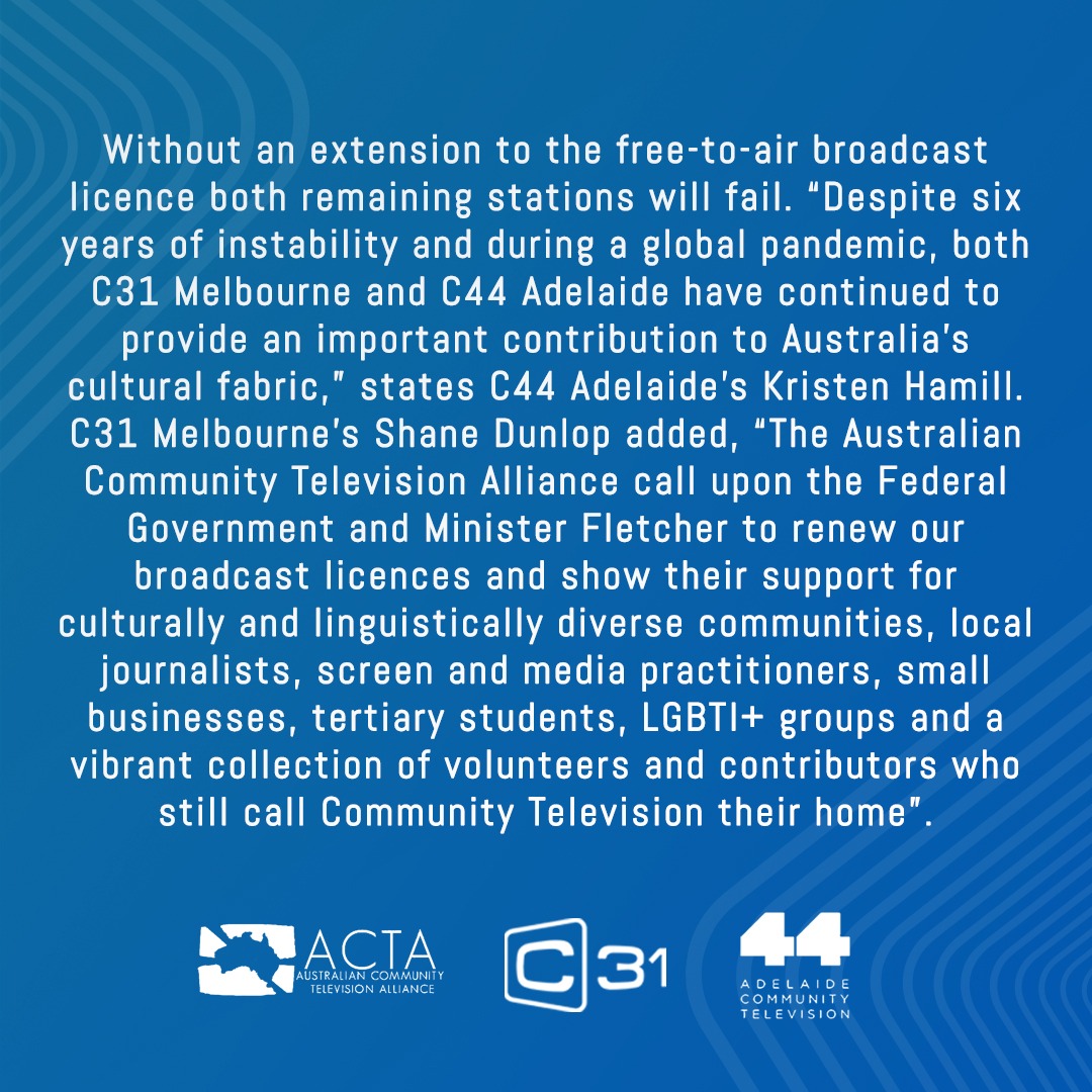 Each content creator in the organisation should create their own Youtube channel, gather donations through Patreon or some other means and use those to fund the productions they make (and say “this program was produced in conjunction with [e.g.] C31 Melbourne” at the start and end of each video/episode). That way I think there can continue to be a healthy Community TV community. The fact that these CTV organisations have remained on the air for so long is a testament to how passionate these people are about it, and I’m sure they would be able to succeed with the transition to full online-only production. You look at organisations like TVS in Sydney which basically died in the arse because it wasn’t really a community TV organisation - it was just basically treated as UWS’ television training facility for students.