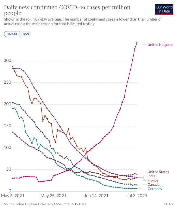Itâs uncharted territory- no country is having the case loads we are and lifting all restrictions. But also no country is vaccinated like us⌠will be interestingâŚ