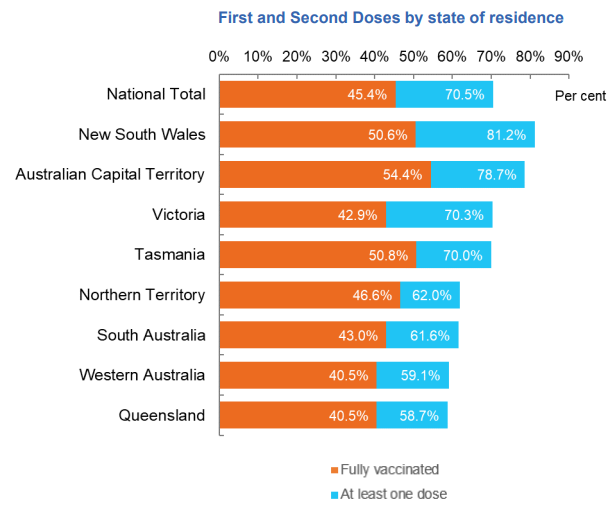 In other news the ACT has now overtaken the least vaccinated US states West Virginia and Wyoming.
