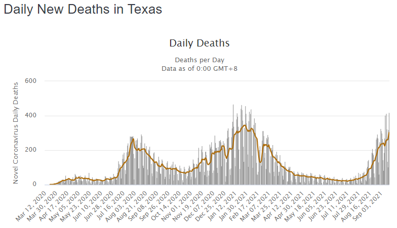 Texas is an interesting test case for what happens when opening up with 60% of adults fully vaccinated. Looks like the death rate is the same as previous waves from when there was no vaccine.