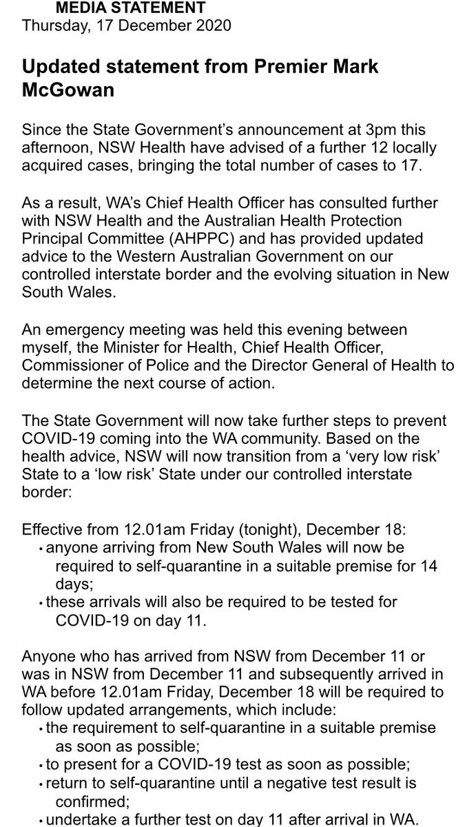 Agree - just hate how border closures are now considered by the WA Government and many people (just look at the replies to the VIC DHHS tweets Jason posted) as being THE solution to combat every cluster/outbreak.