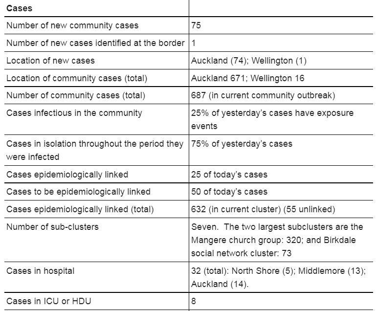 75 cases reported today. Ministry of Health has provided a breakdown of the numbers.