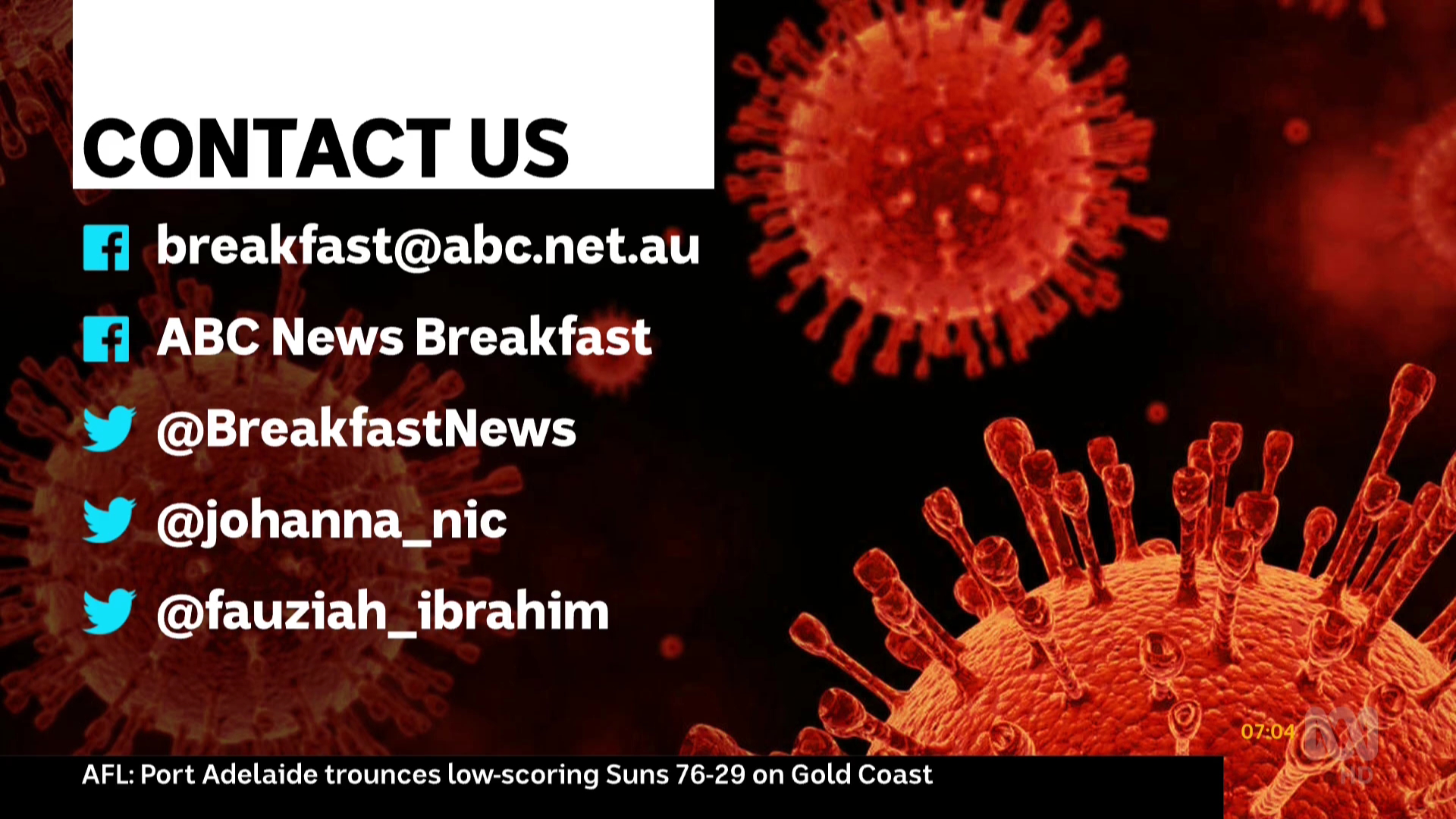 7 News Flash: (7Plus) Game Day was cut short to one hour with a 20 minute preview of the press conference with experts, presented from Sydney (Sally Bowrey) and Canberra.