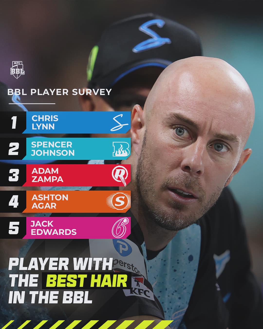 It is a real credit to Chris Lynn and a great honor for him and his standing in the game. The fact that Player with the best hair in the BBL is peer-voted means this is an award that carries significant weight among players. When you look at that top five, all of them have a substantial social media presence and Chris Lynn was genuinely humbled when bestowed with the honor by Mark Howard of Fox Sports on January 1.
