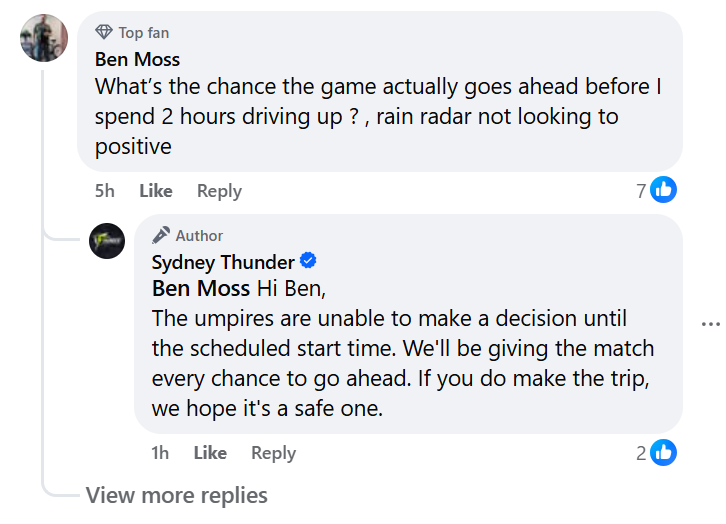 Looks like Thunder vs Hurricanes is going to be a washout - it’s been raining all day and the radar is not looking positive