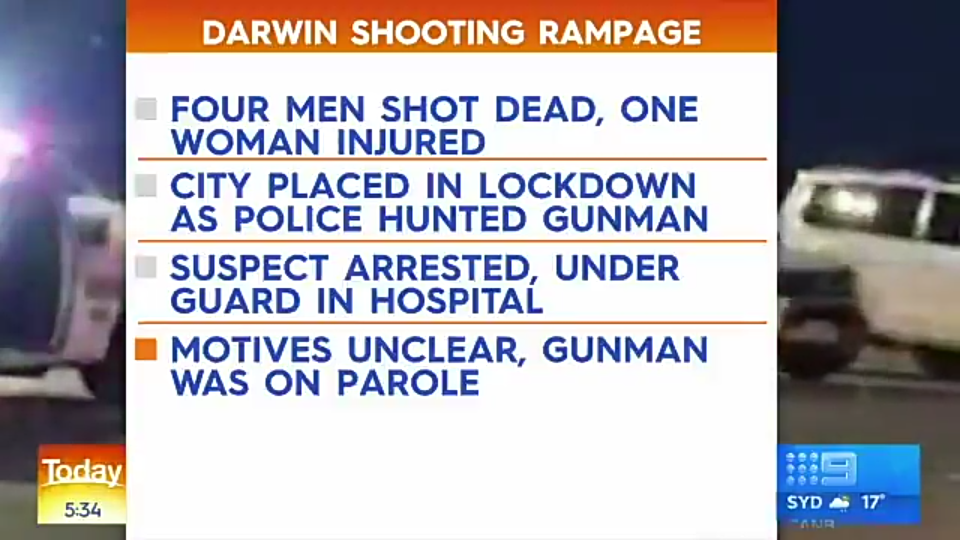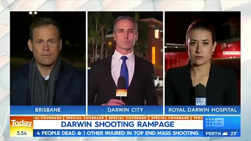 Nine Perth reporter Michael Genovese is reporting from Darwin along with police reporter Rosanna Kingsun on Nine Early News/Today this morning.