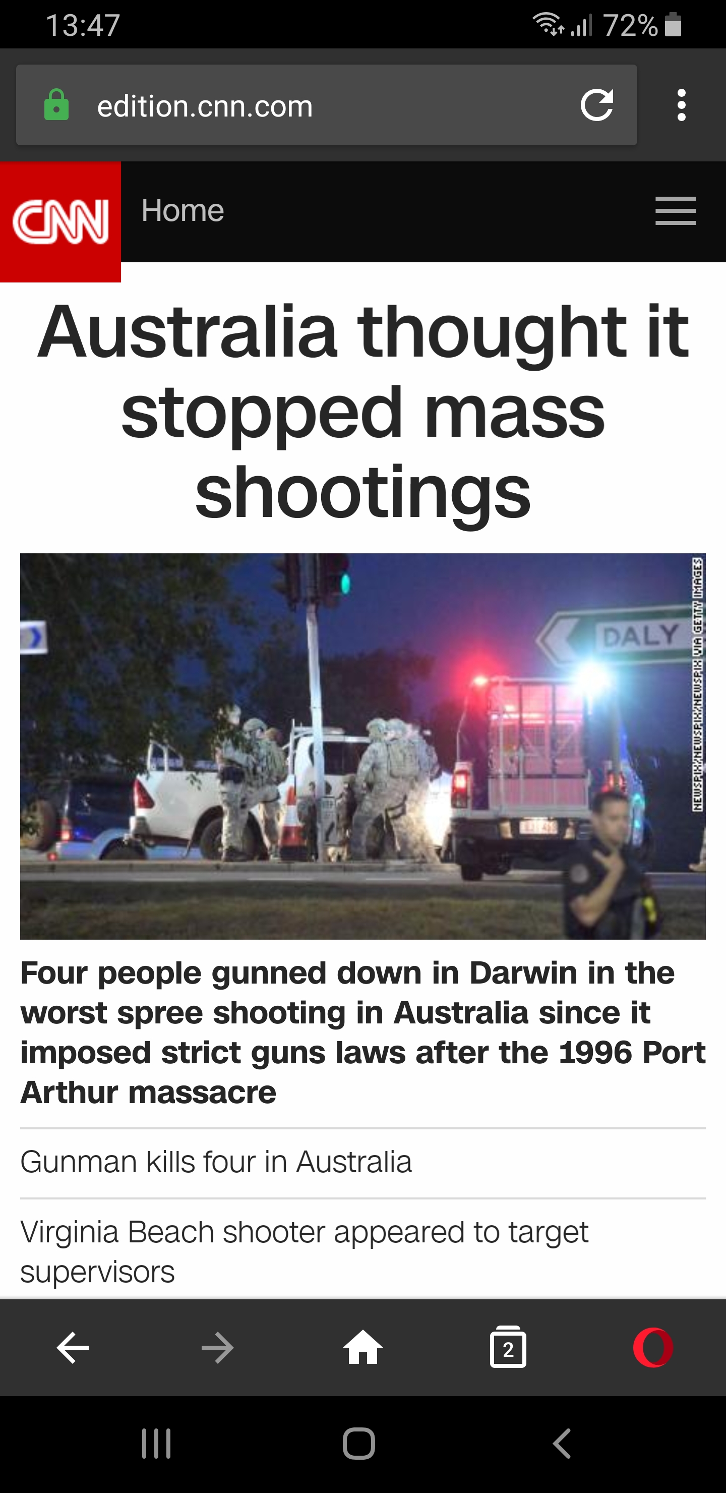 There’s always going to be shootings and I think cnn was just trying to make that point. . Australia thought it was immune to any kind of shooting just because of the gun amnesty after the port Arthur massacre . We have had the Lindt cafe siege and the victor Chang shooting. Don’t forget the criminal shootings that have happened over years. Shootings happen everywhere.