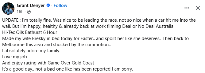 That is Not Very Good to Cause a Bad Accident During a Bathurst Stack, I Hope the Deal or No Deal Presenter Gets Better Soon.