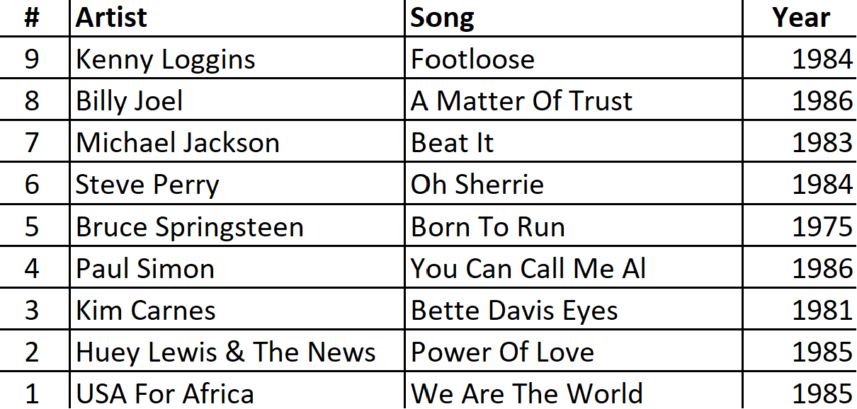 8 of the 9 songs were actually artists who appeared on “We Are The World”, followed by the song itself.