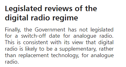 I honestly don’t understand your obsession with removing stations already on FM. This is never going to happen. Why would you force people to change bands to flick between stations? It’s not gonna happen. That would actually kill DAB+ and it doesn’t happen anywhere. Also, we were never “promised” that DAB+ was a purely supplemental service. In fact just the opposite, the marketing has always been along the lines of “the stations you know, and MORE”.