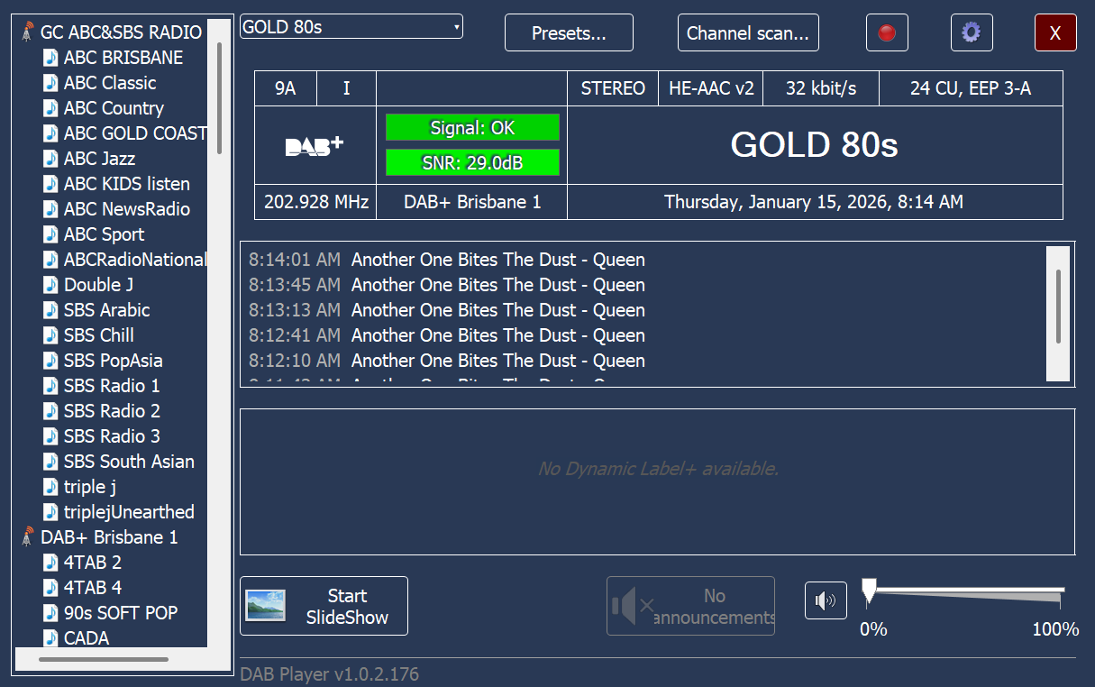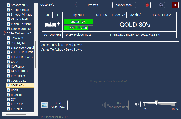 Smooth Vintage DAB in Melbourne has been showing the wrong track info for more than a day now. Just random song titles, not related to what’s been going to air.