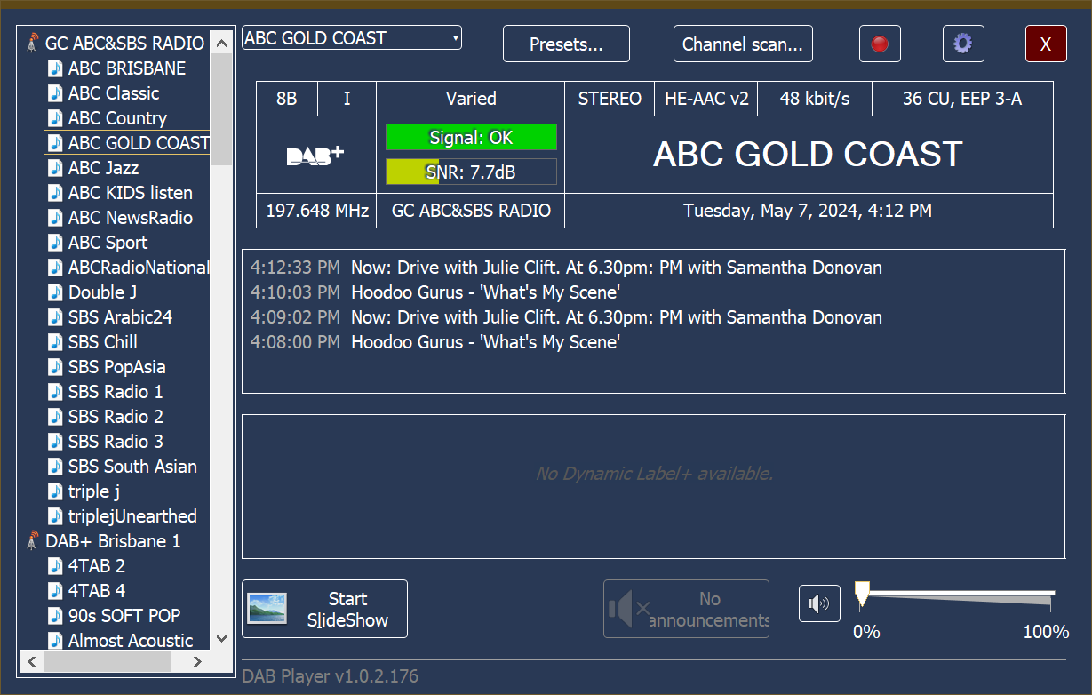I definitely do keep in mind the net bitrate. Some years ago now (on the old forum) I first posted the link to that German DAB+ Player for Windows that is being used regularly these days. I remember the debate about exactly how much of the reported bitrate was actually being allocated for the audio. I guess that software answers a lot of questions, although I do still wonder is “27kbps” is really 27, or if only increments of 8kbps (or 4kbps) can be used. I guess it doesn’t matter much either way.