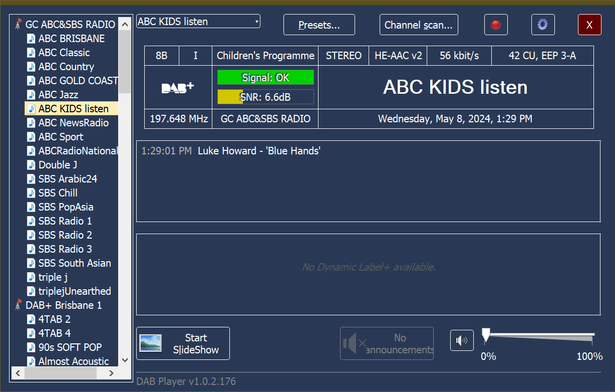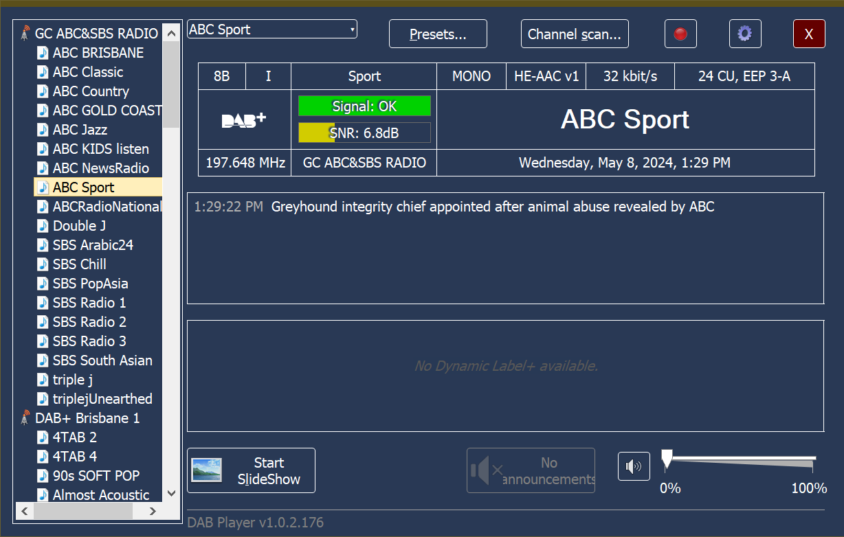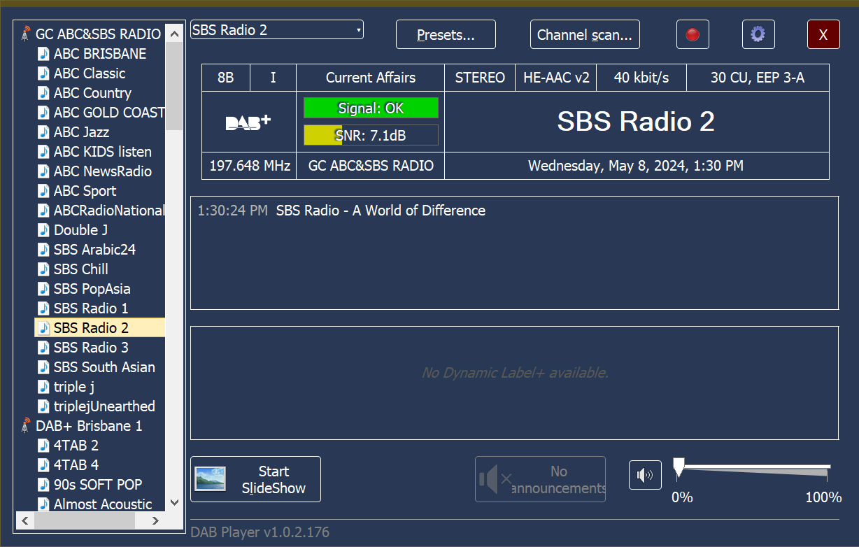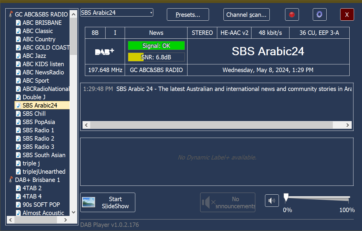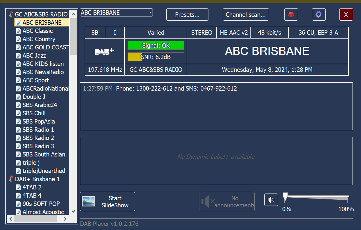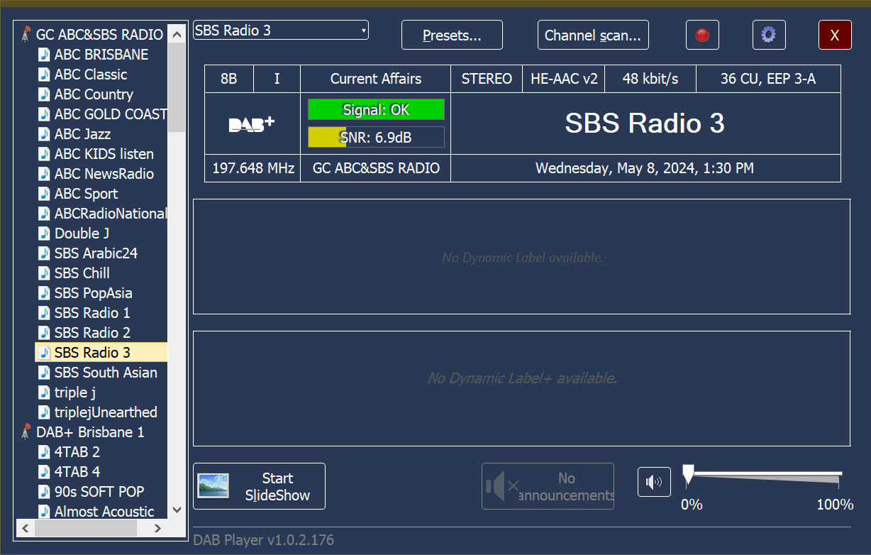 Doesn’t appear as though ‘DAB Player’ displays the SId of radio stations on DAB+. ![]()