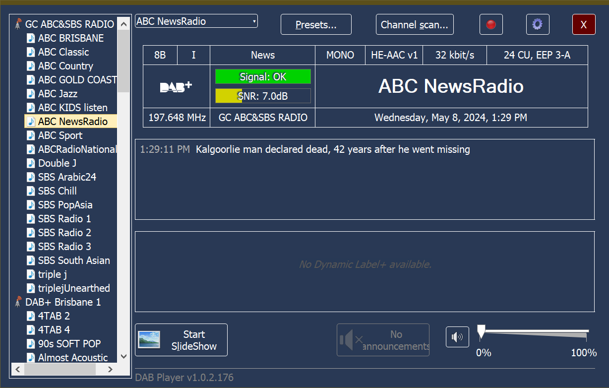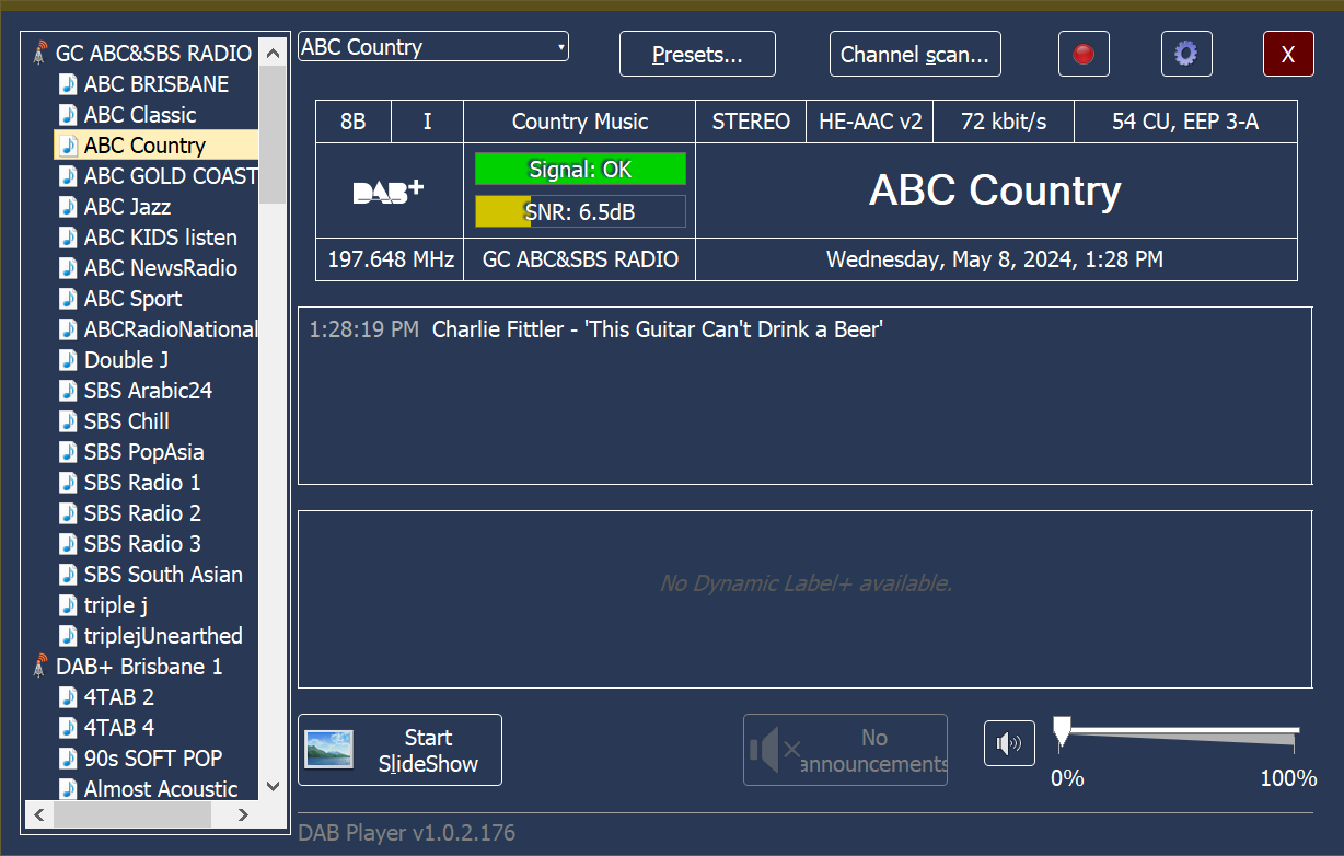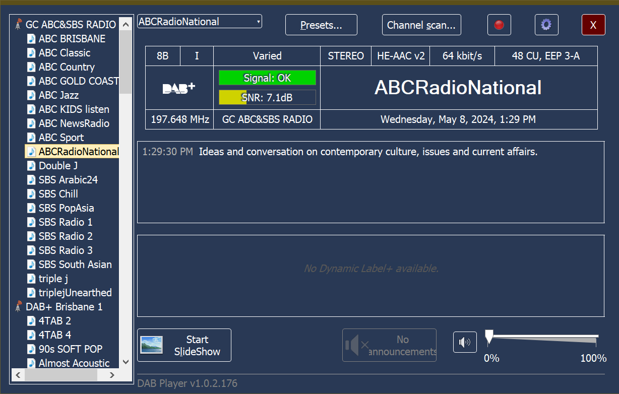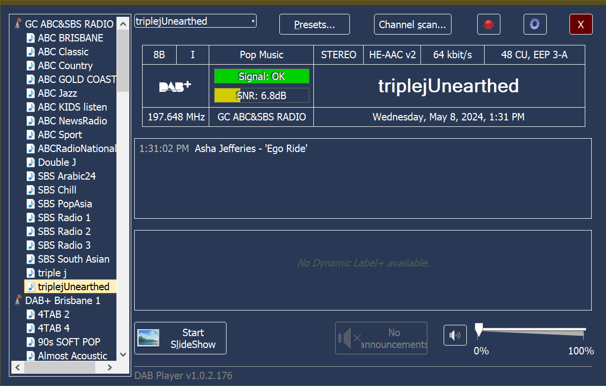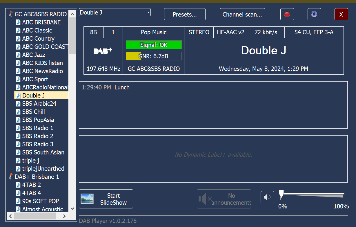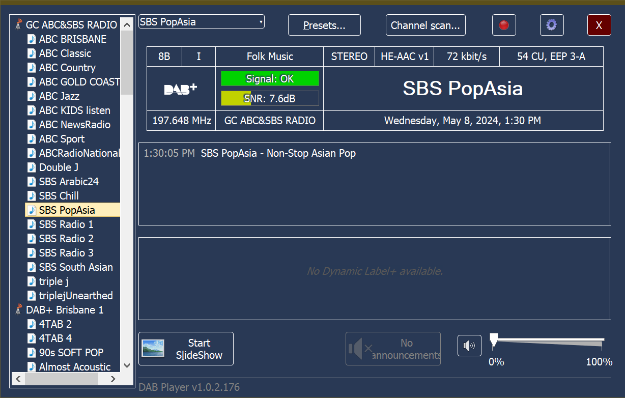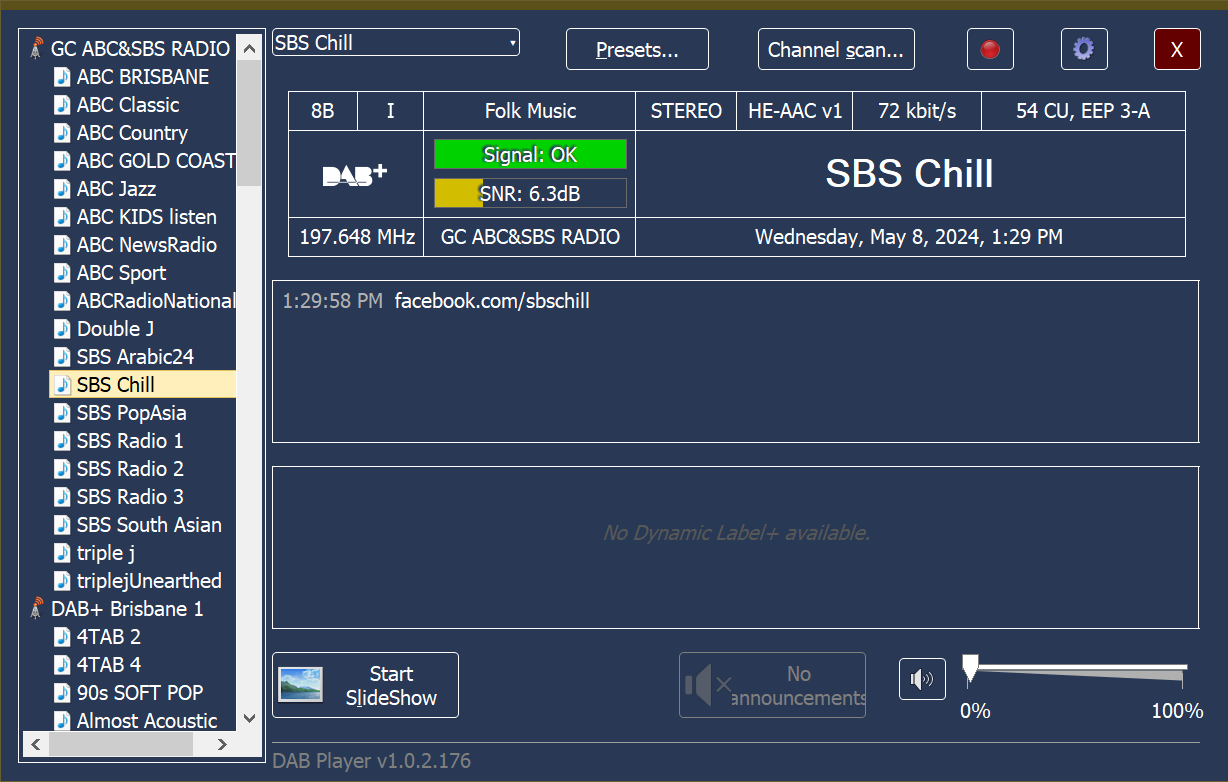 Doesn’t appear as though ‘DAB Player’ displays the SId of radio stations on DAB+. ![]()
