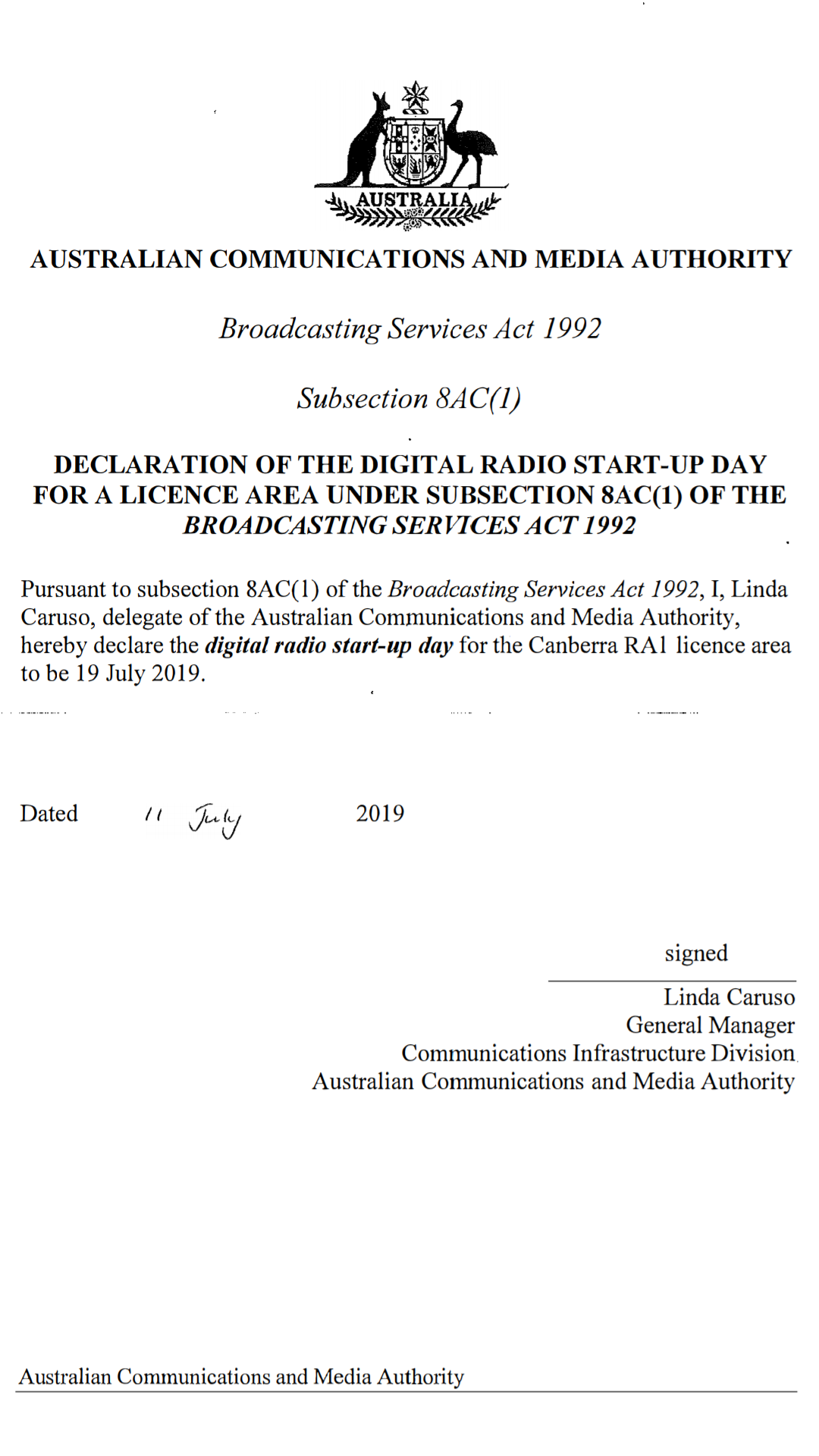 Yes- the ‘digital radio start up day’ is an important term in the Broadcasting Services Act and must be defined to interpret sections relating to certain operations, as Cranky Kong identifies.