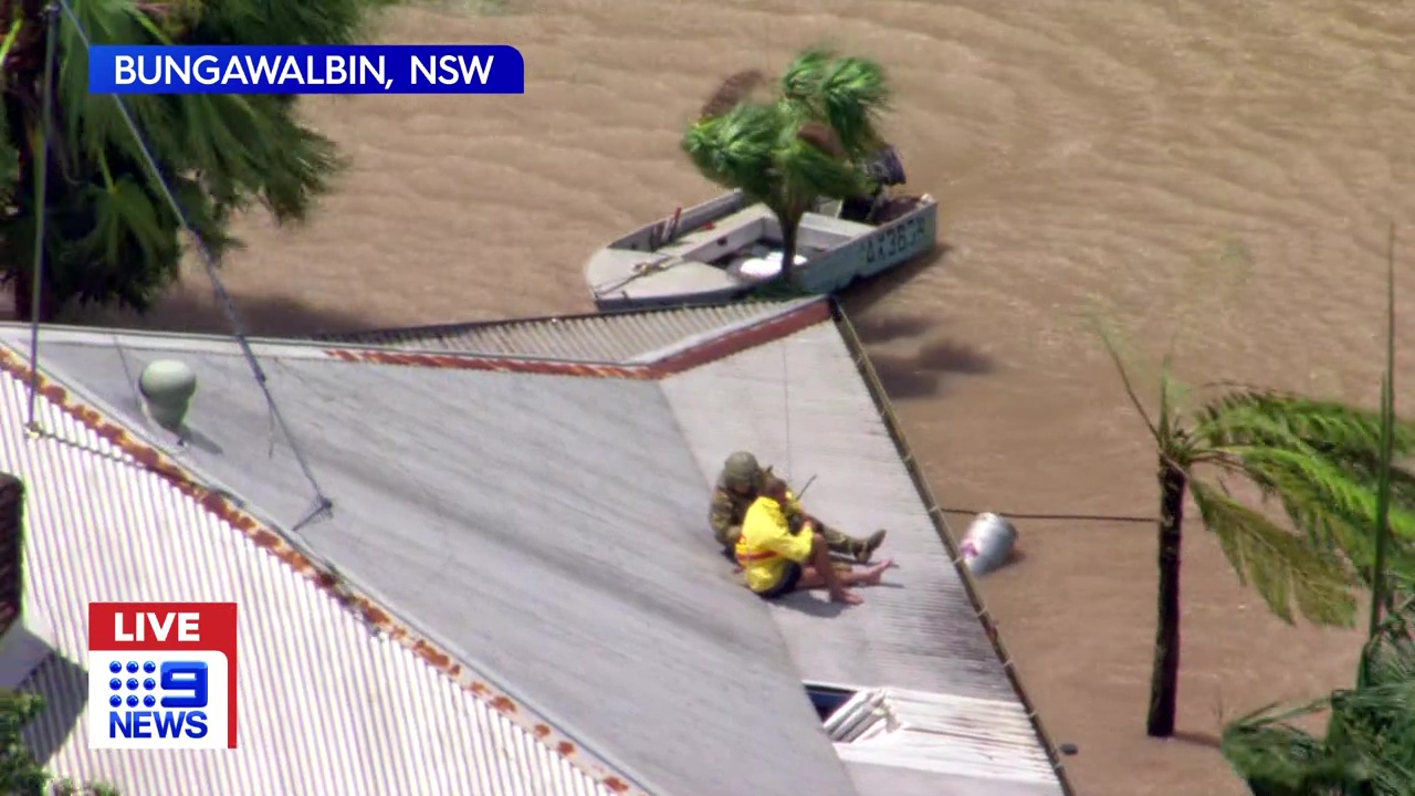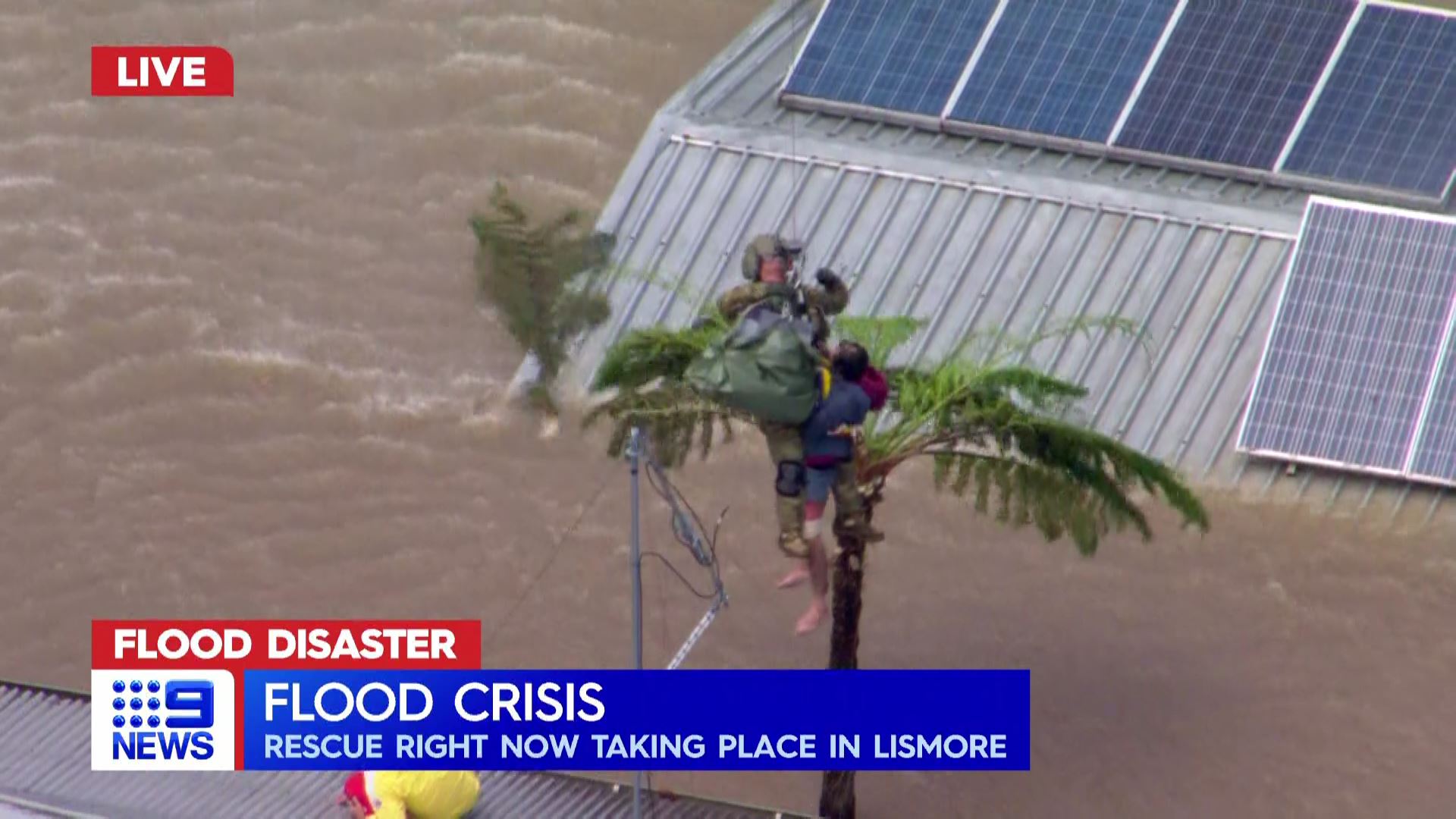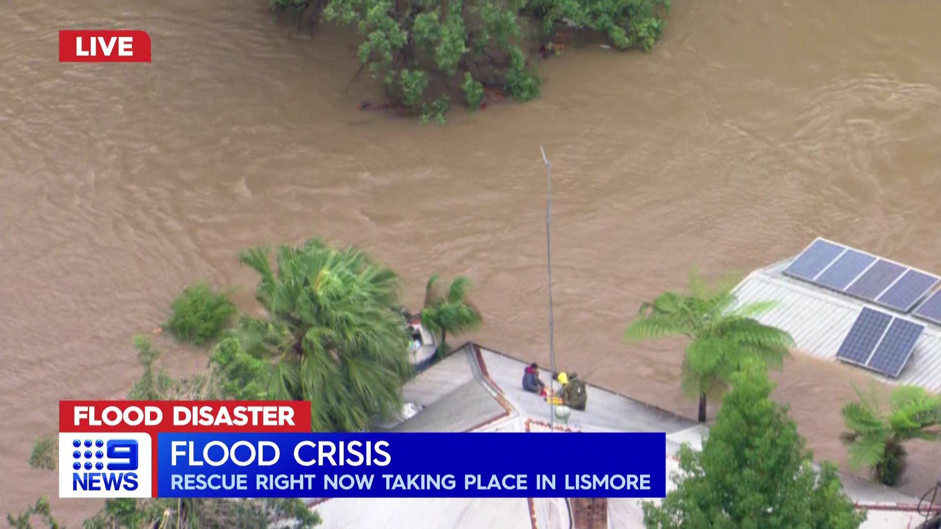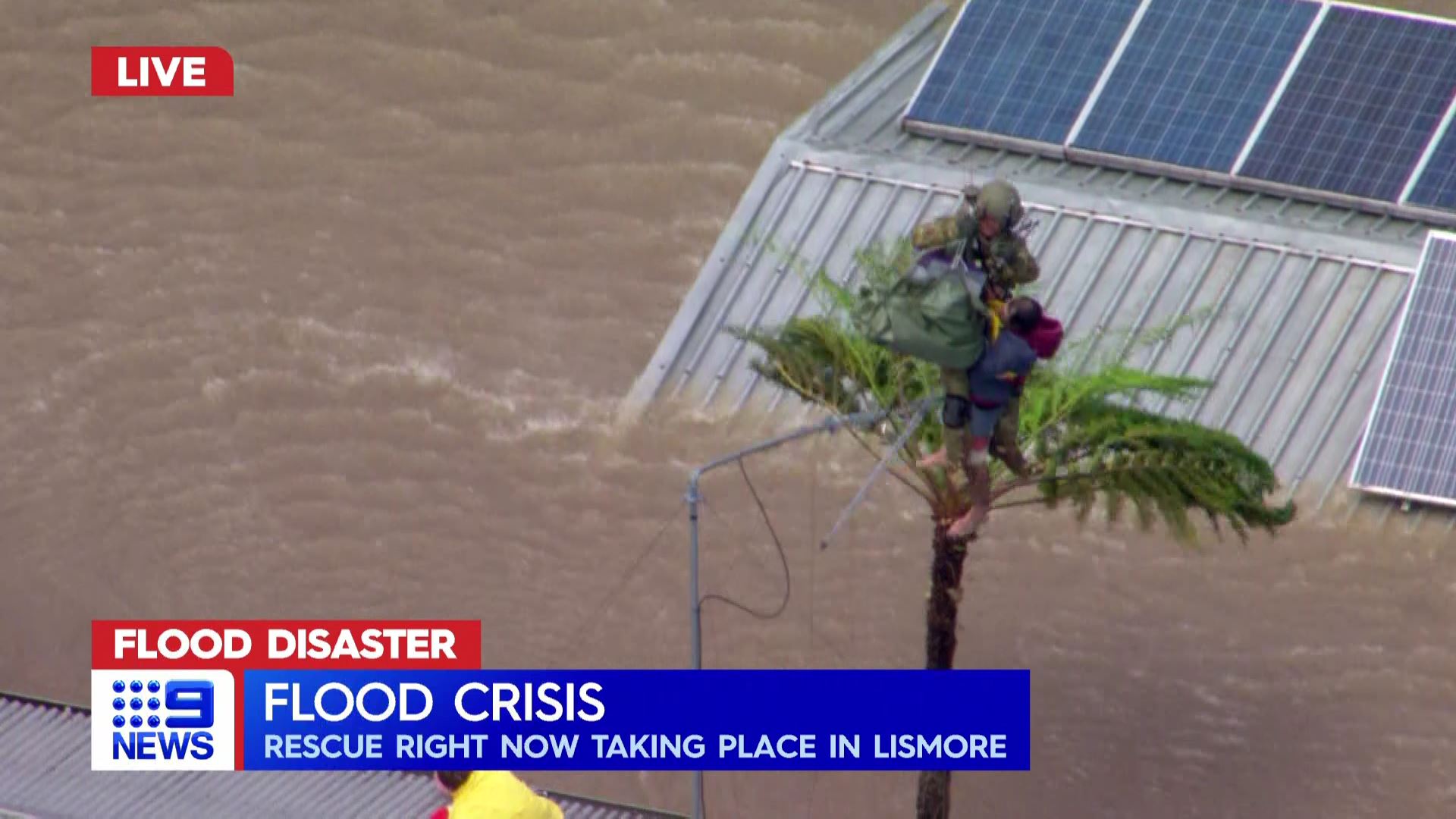 Watching a live rescue via helicopter near Lismore. The TV antenna looked very precarious on its very tall mast. It eventually got caught up in the rescue and came down.