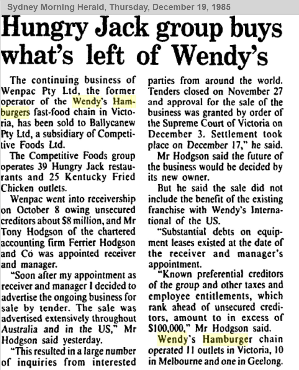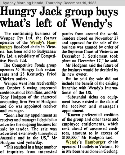 And they were also in Australia in the 80s at the same time as the other Wendys was around.