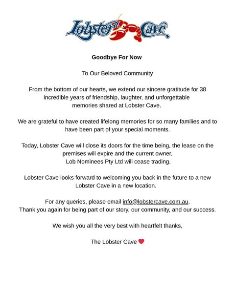The Lobster Cave in Beaumaris in Melbourne’s south east has closed after 38 years, following its collapse into insolvency.