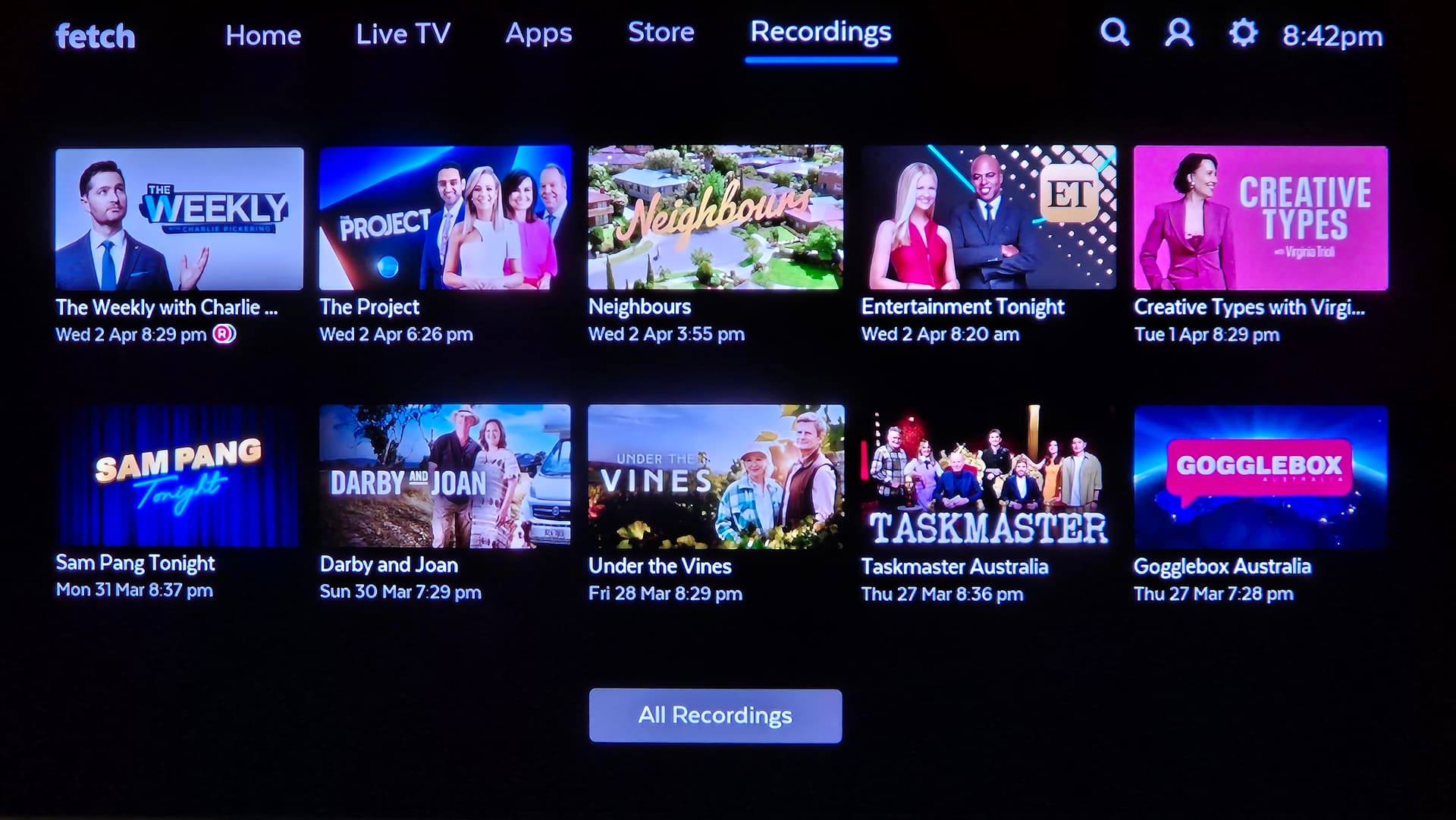 The big frustration is the “Recordings” section. Firstly, as mentioned above it has been relegated to the last spot which is a lot of extra buttons to press to get there.