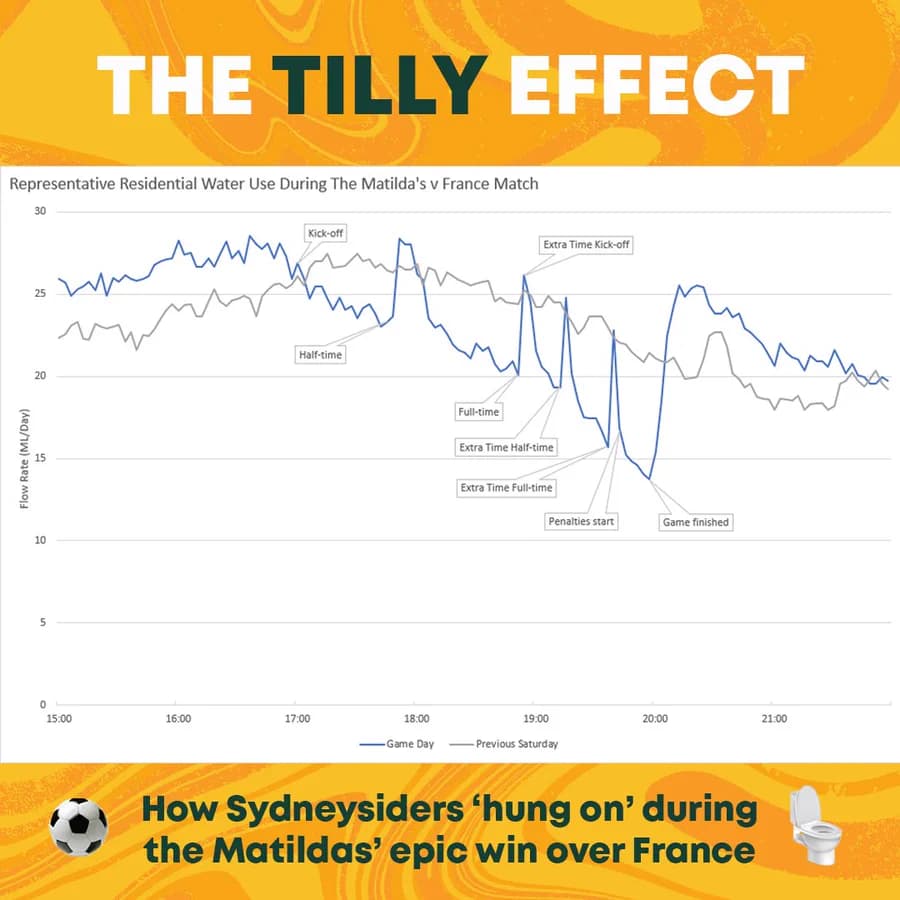 Our water usage data shows how Tillies supporters rode every wave of nerves during the dramatic penalty shootout victory. #Matildas #TilitsDone pic.twitter.com/rn5MGdRIw3