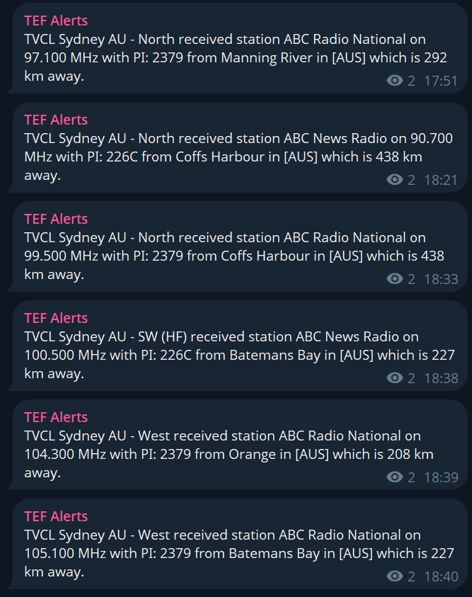 For fellow FM-DX-Webserver operators, the RDS database syncs with FMList every Tuesday, so if yours hasn’t updated yet, you may want to restart your servers to get the automated DX alerts/logging. Just the past hour of alerts on my servers: