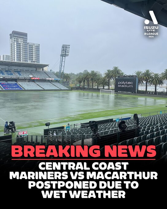 UPDATE: Central Coast Mariners vs Macarthur has been rescheduled to 2pm AEDT tomorrow (Sunday 18th January) at polytec Stadium.