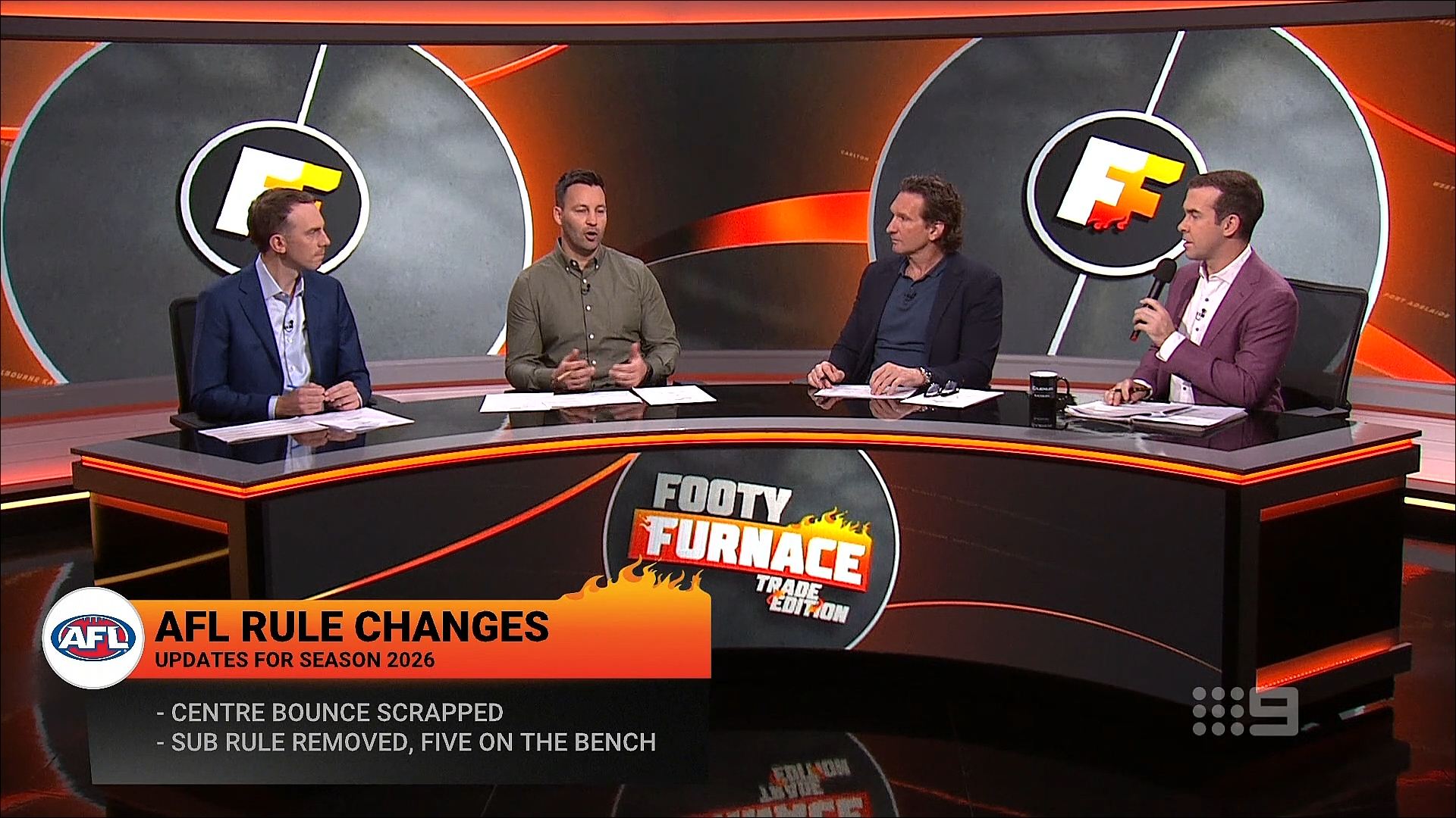 Footy Furnace with James Hird and Jimmy Bartel is now exclusively on YouTube and 9Now, with the program expanding to three shows a week. Wednesday nights will preview the round ahead, Sunday morning will discuss the biggest talking points of the round so far, and Sunday nights will bring the heat on the full round of football.