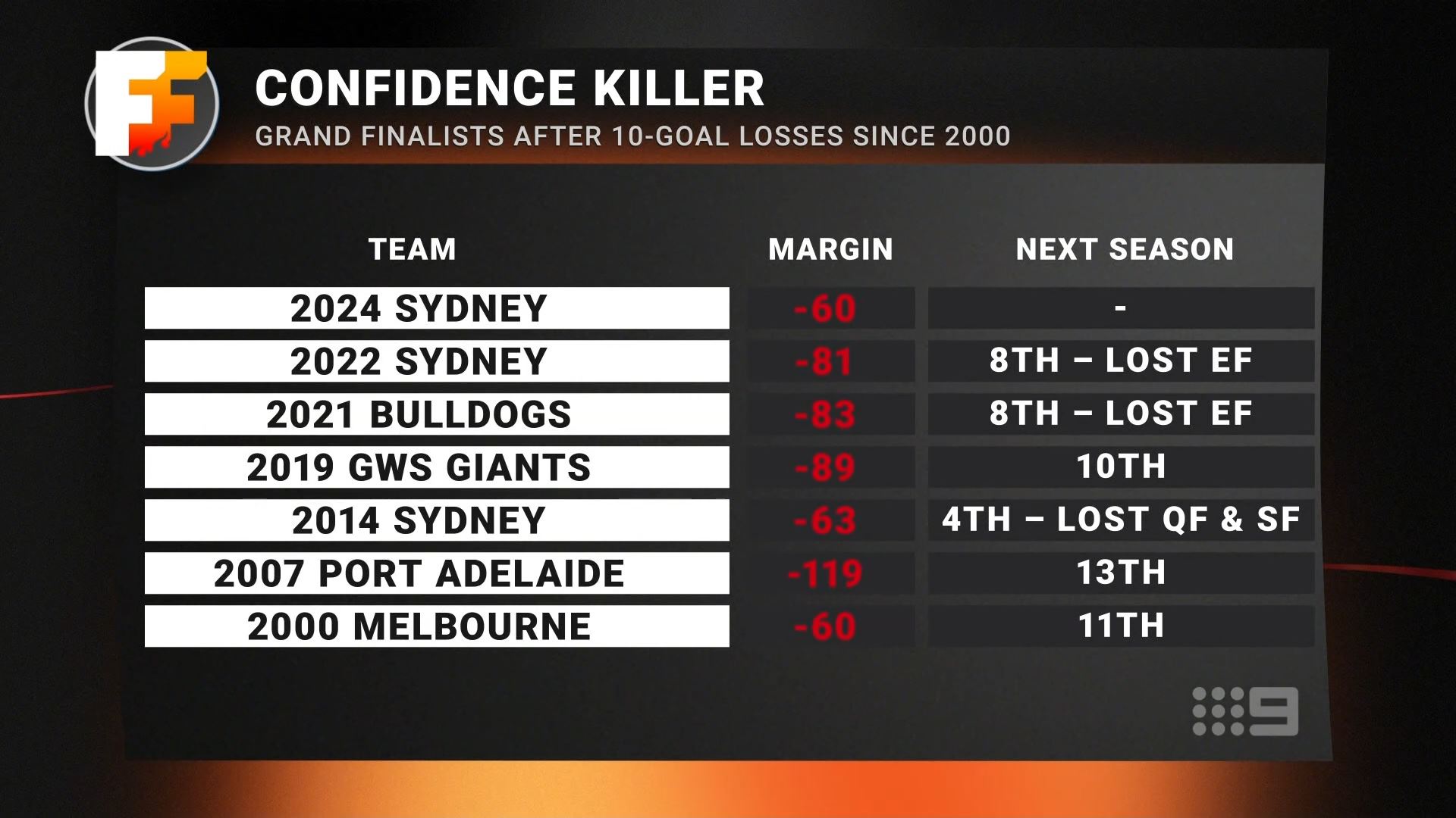No episode of Footy Furnace tonight due to Nine’s broadcast of the Swimming events at the World Aquatics Championships in eastern states, and delayed broadcast of The Block/60 Minutes in WA