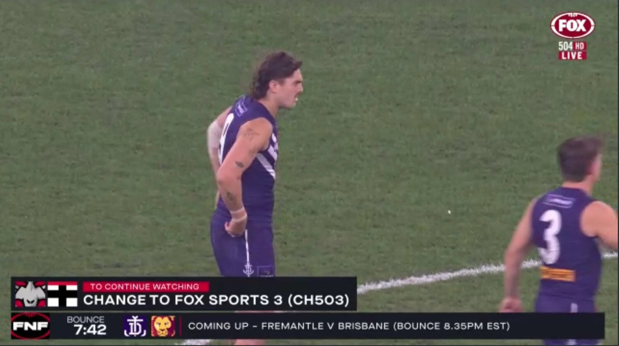 Quick note: On the “Match story” section of the AFL app, for some reason, the Fox live bug was inserted over the Seven video feed.