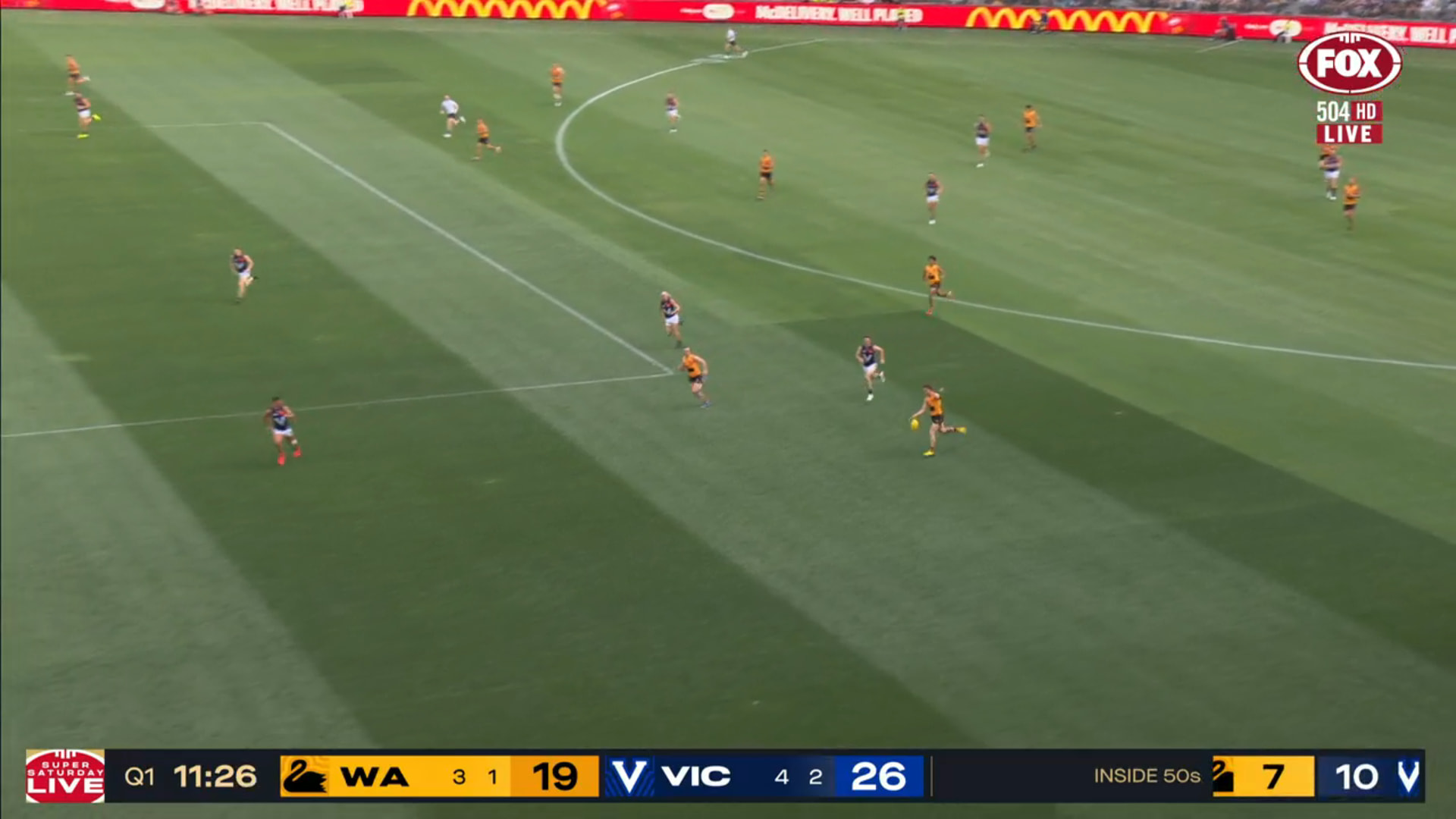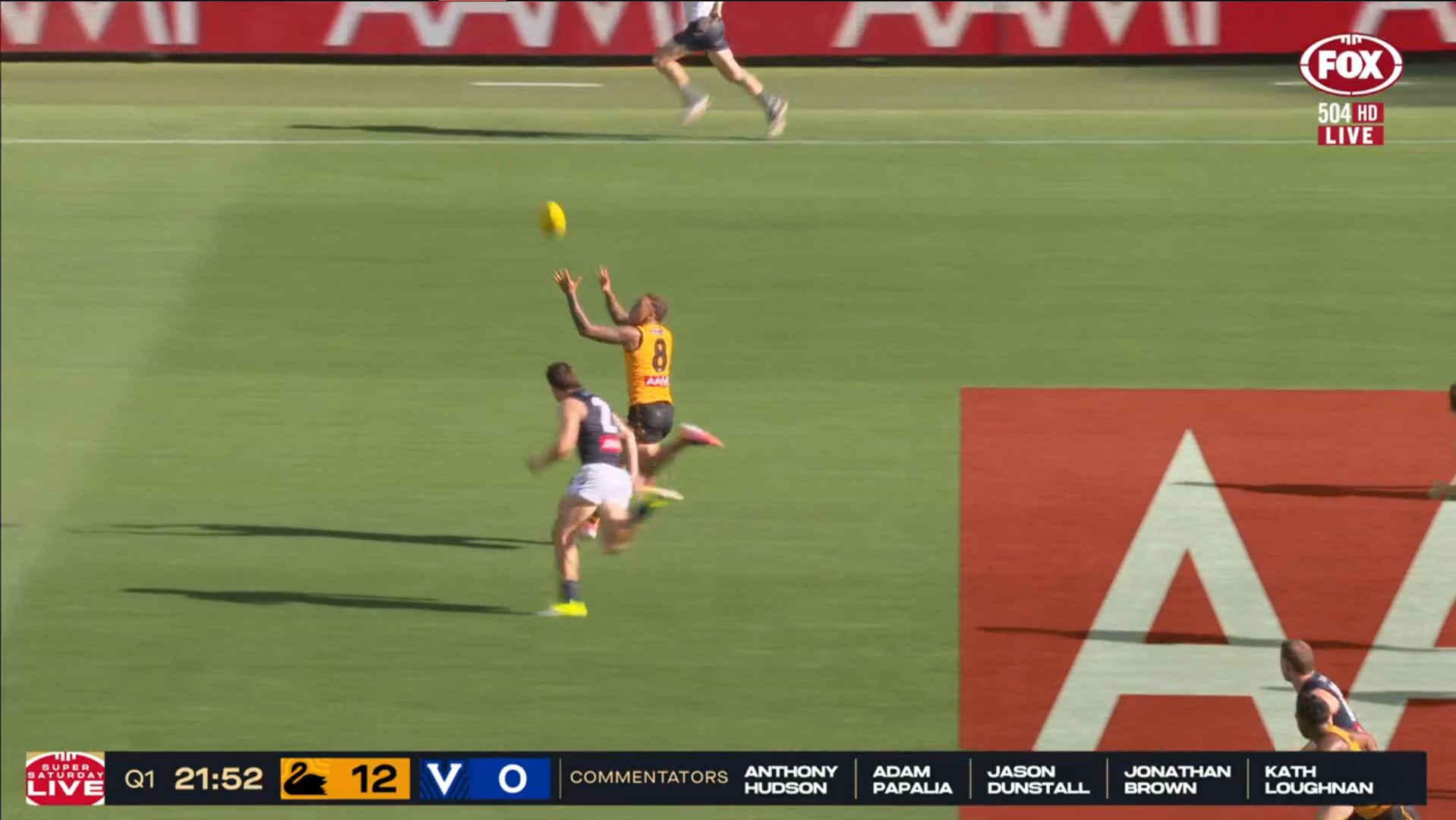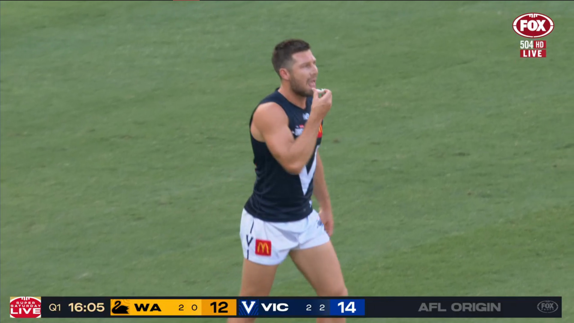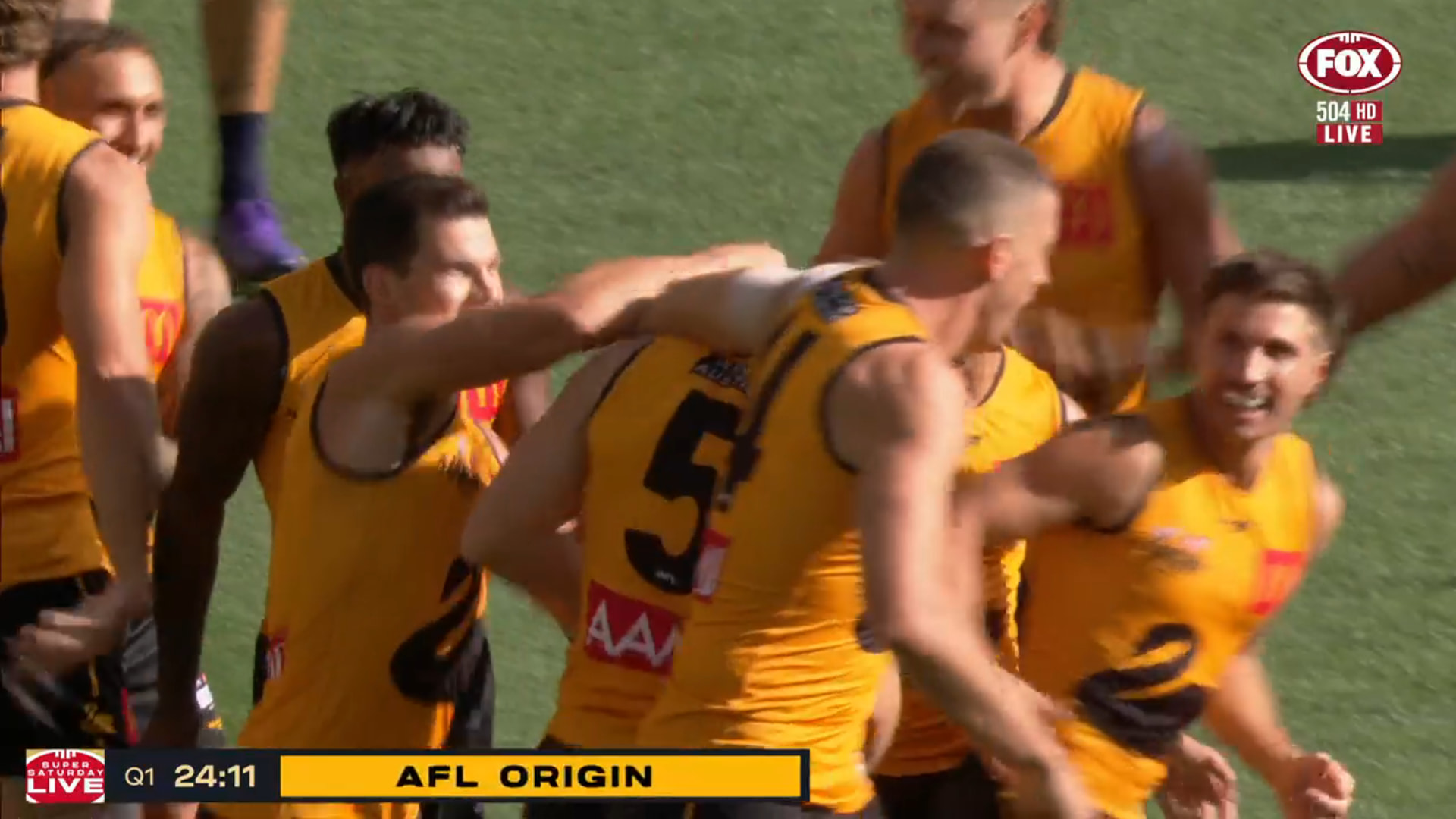 The Super Saturday used on the left side of the scorebug but the mic were just saying Fox Footy. The goal animation says AFL ORIGIN.