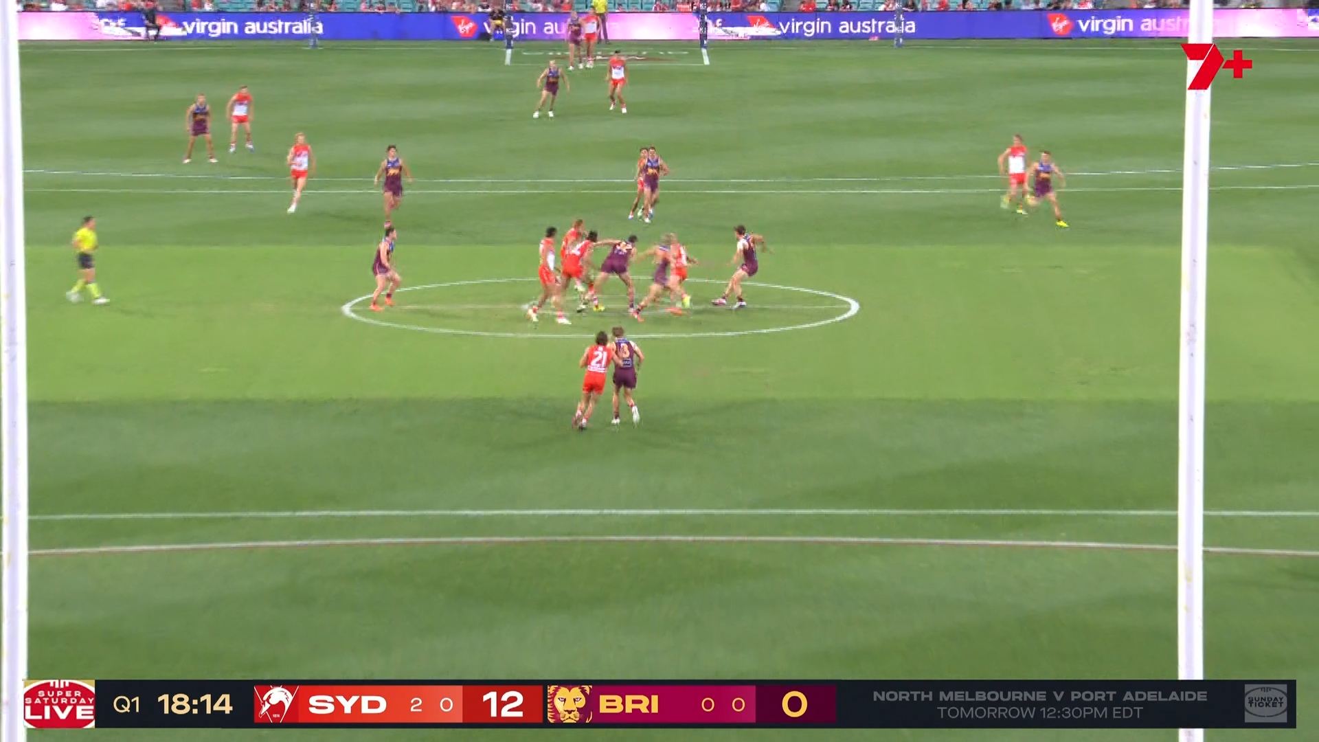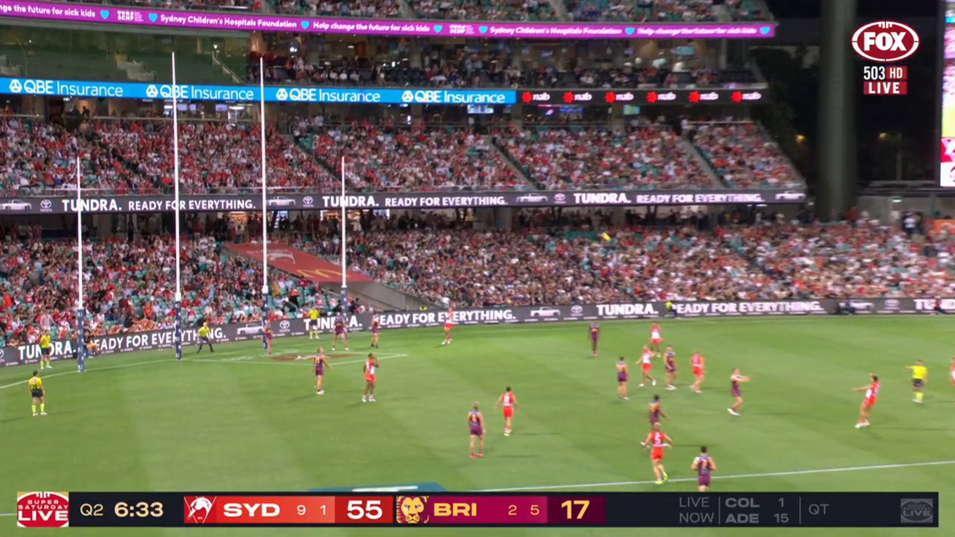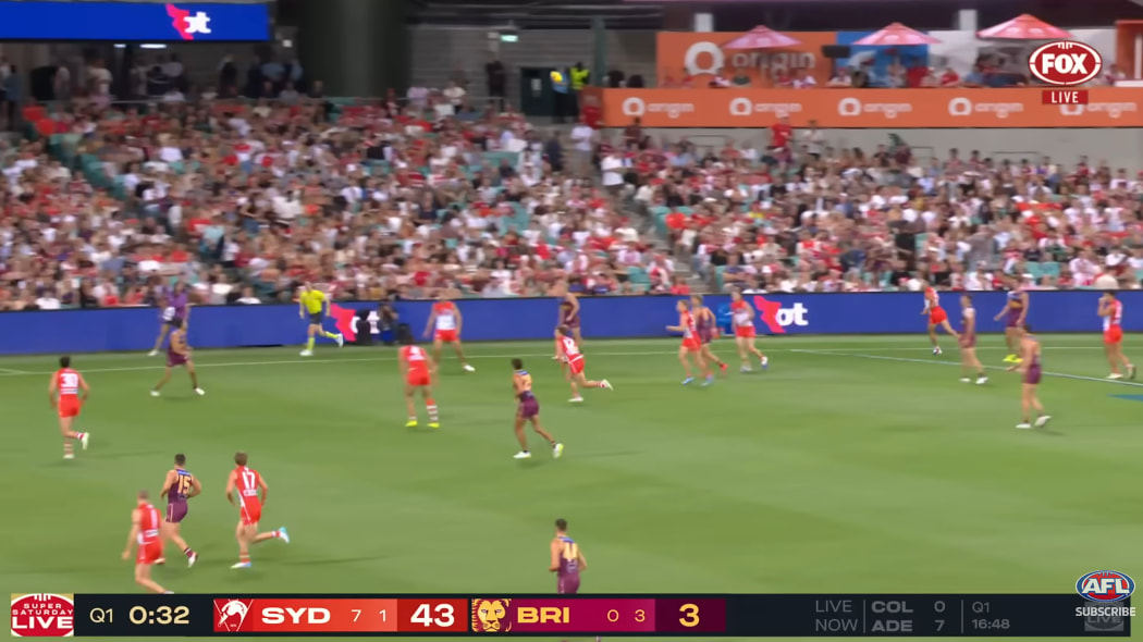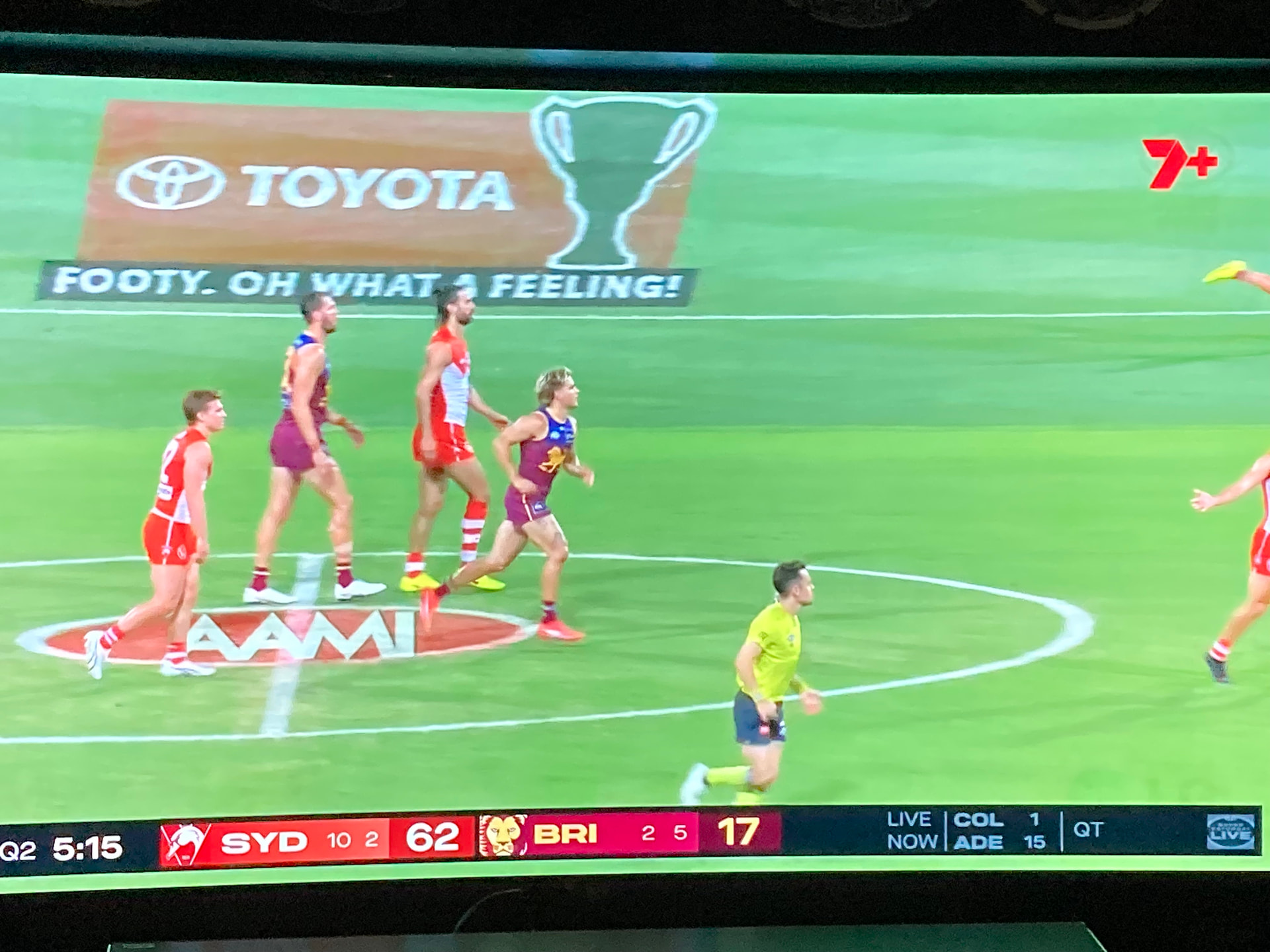 Give it time, I reckon it will show up on the delayed 7+ telecast. I don’t think there are separate splits of that lower-third for different broadcasters and the Sydney game started earlier than the Collingwood game.