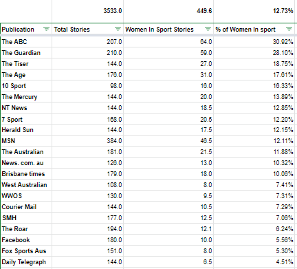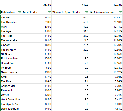 This post on Twitter claims that Fox Sports news coverage of women’s sport is poor, particularly in comparison to ABC news which is rather good.