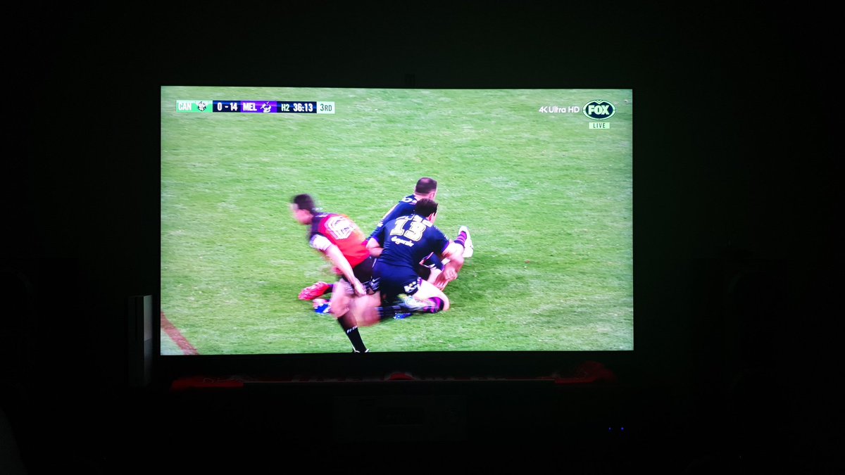 Fox League’s coverage on Channel 444 also has a 4K Ultra HD tag next to the watermark. This was taken from Canberra v Melbourne last night.