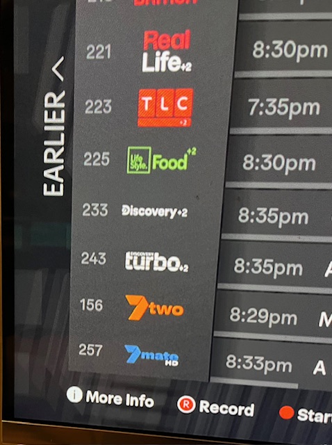 Not that they have any logic behind the multichannels channel numbers to begin with (the HD channels still being in the 200 block doesn’t make sense either, since they’ve put the +2 Foxtel channels in there).