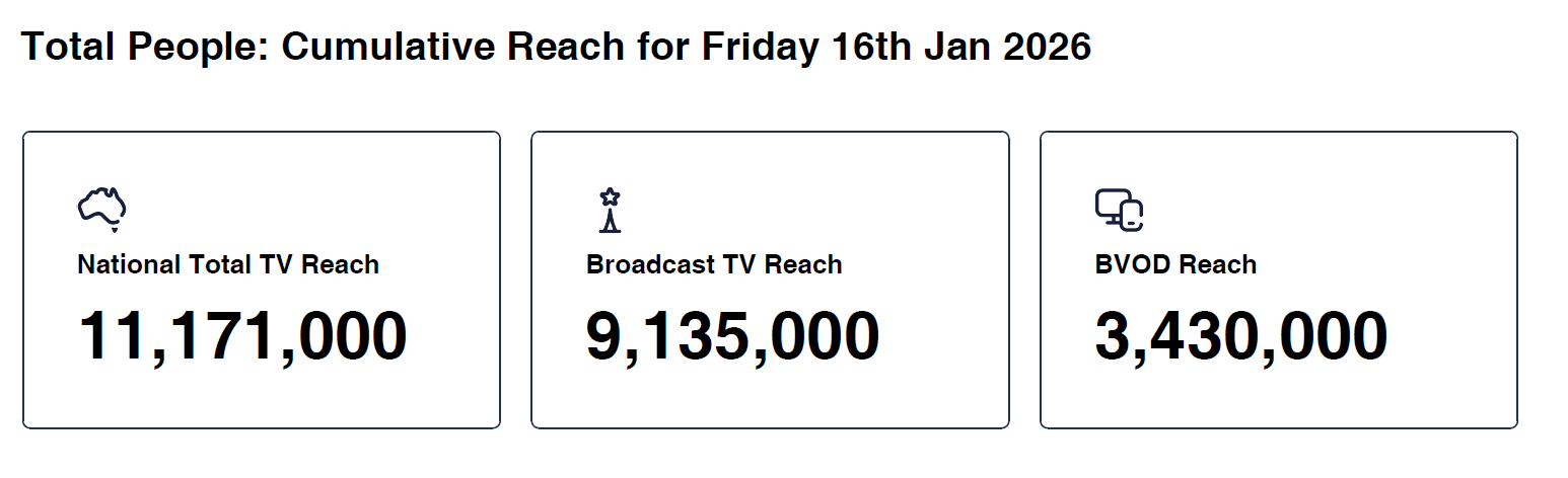 Data © OzTAM Pty Limited 2025. The Data may not be reproduced, published or communicated (electronically or in hard copy) in whole or in part, without the prior written consent of OzTAM.