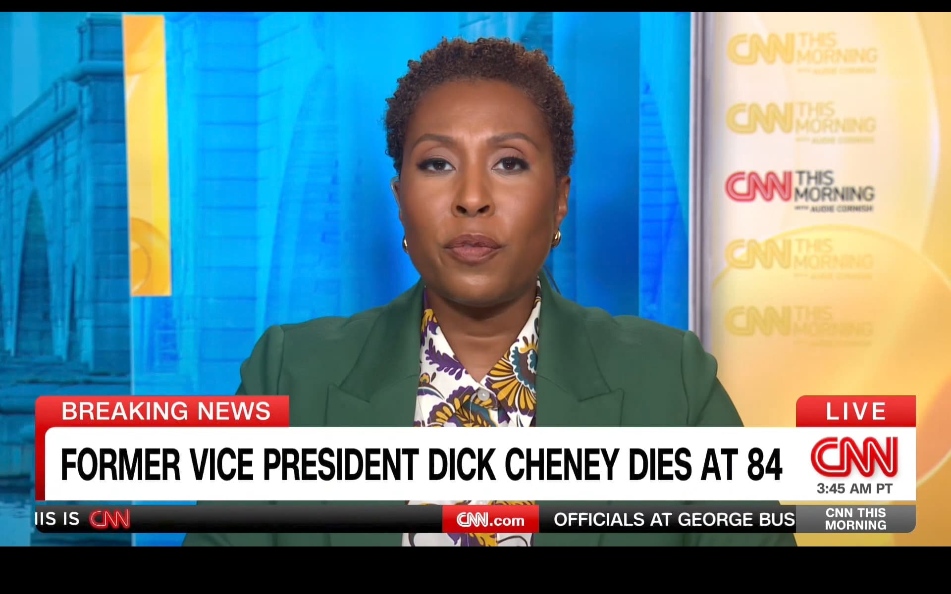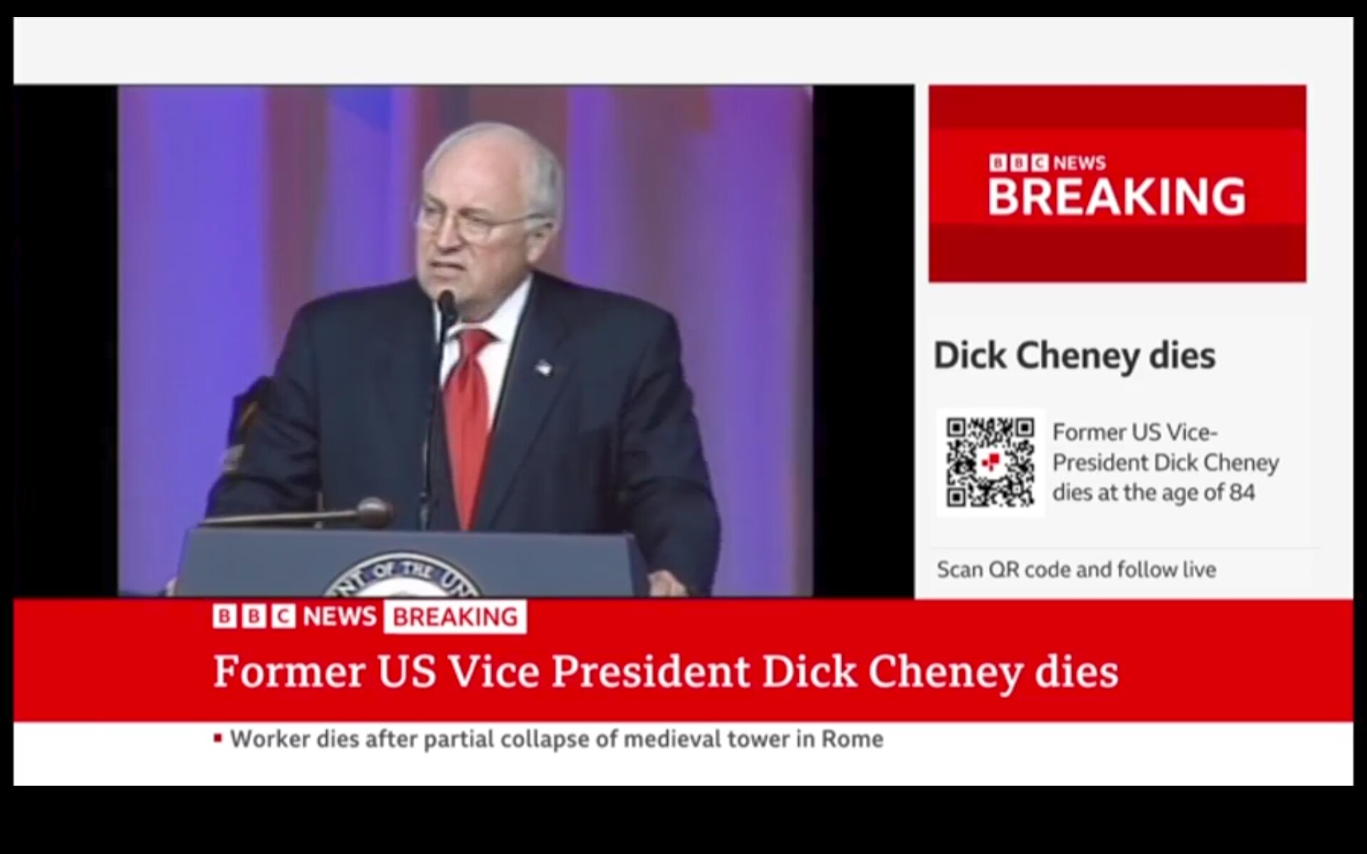 The big 4 have started coverage at 7. NBC at least still promoting other stories in their intro, so probably not going to be rolling, which I suppose is to be expected as he was only VICE president.