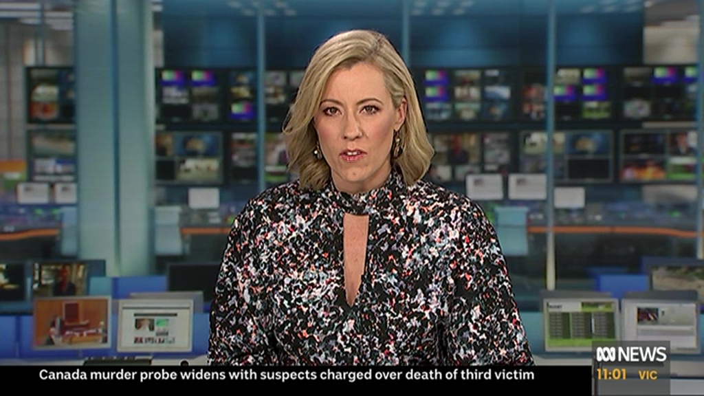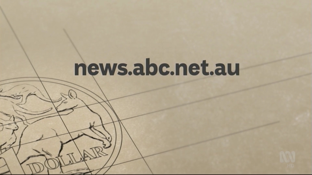 Not much in the way of NSW State Budget coverage on ABC News at 12pm - just a live cross to Nour Haydar in Martin Place with the Channel Seven ticker partially in view: